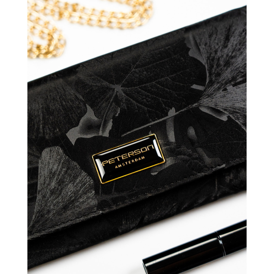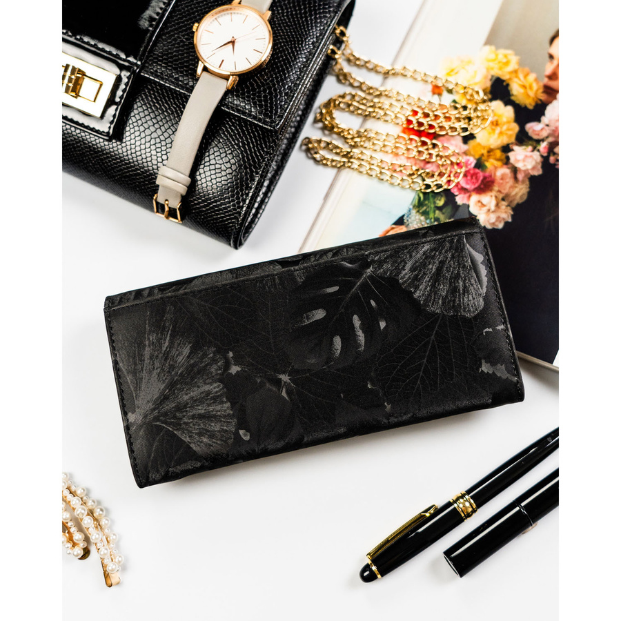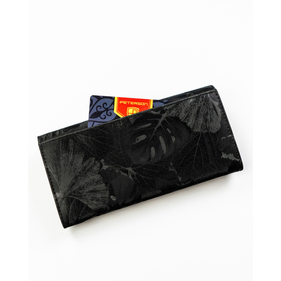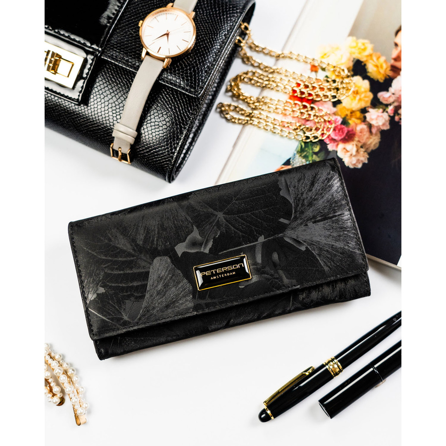 Duży portfel damski ze skóry naturalnej i ekologicznej w czarnym kolorze, zamykany zatrzaskiem - Peterson
