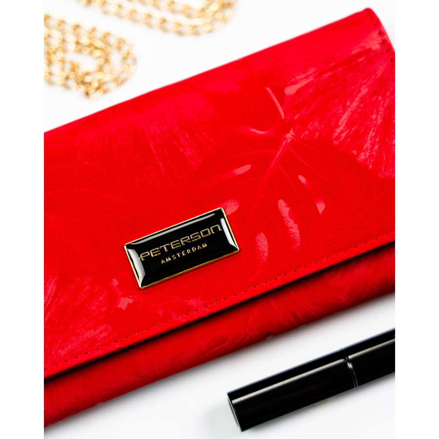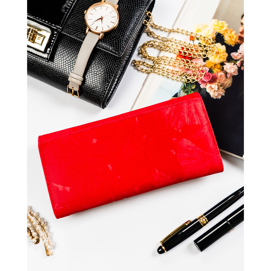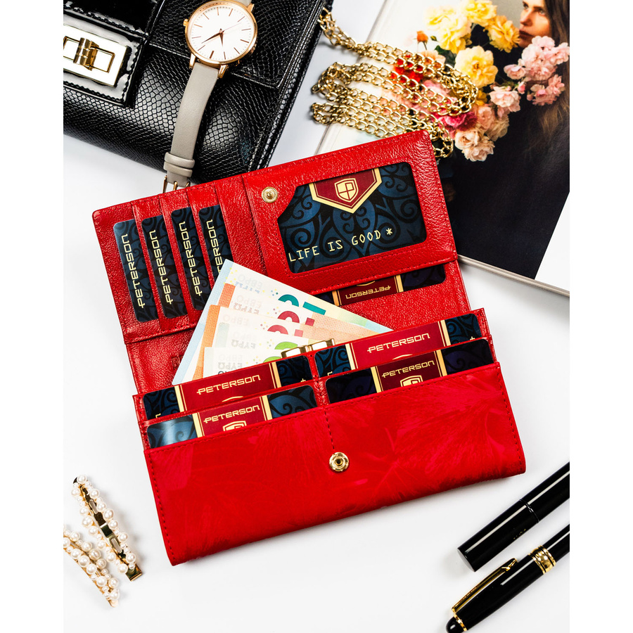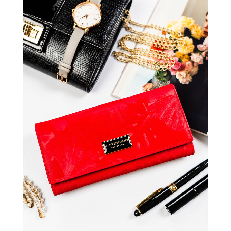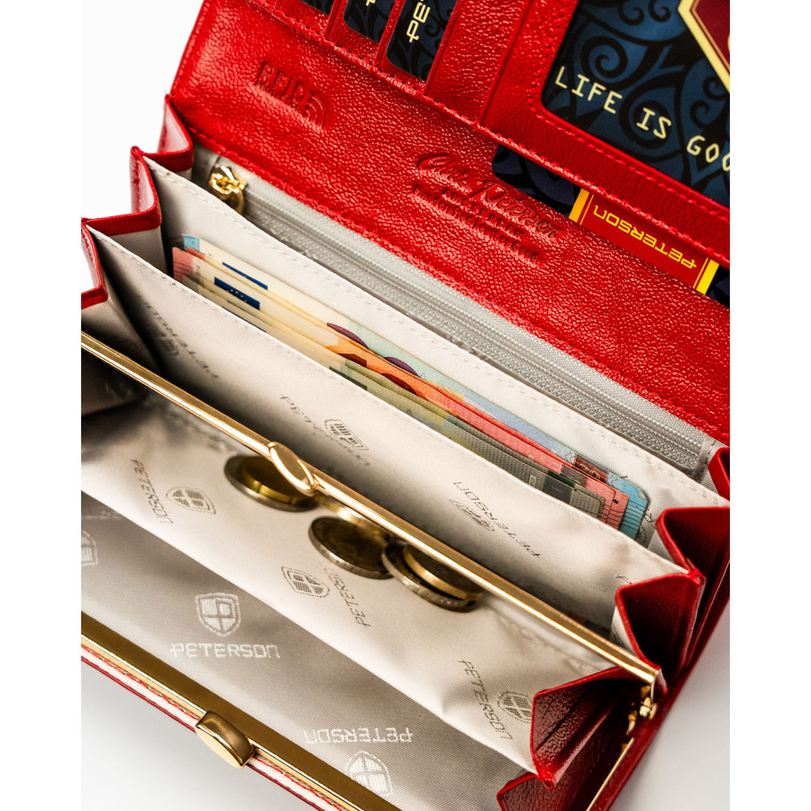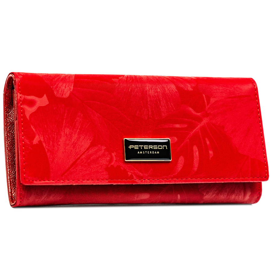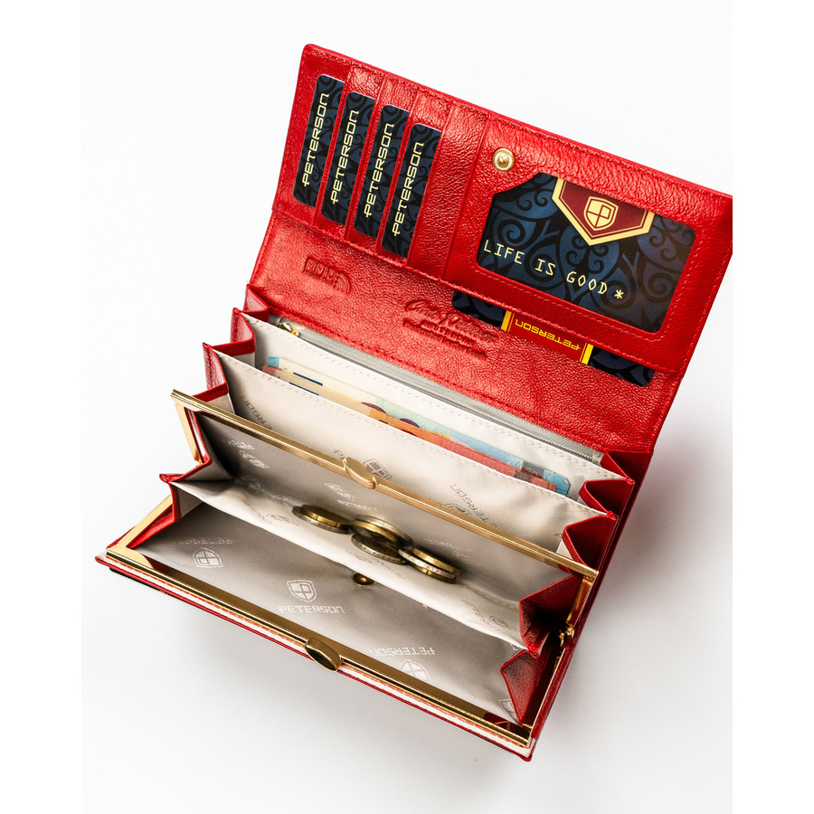 Duży, czerwony portfel damski ze skóry naturalnej i ekologicznej zamykany zatrzaskiem - Peterson