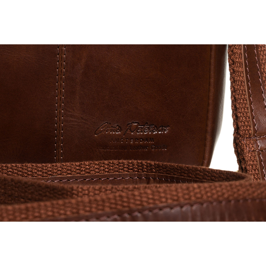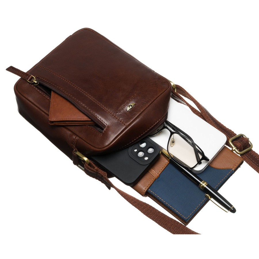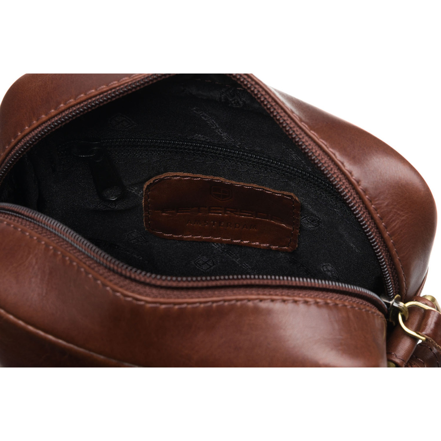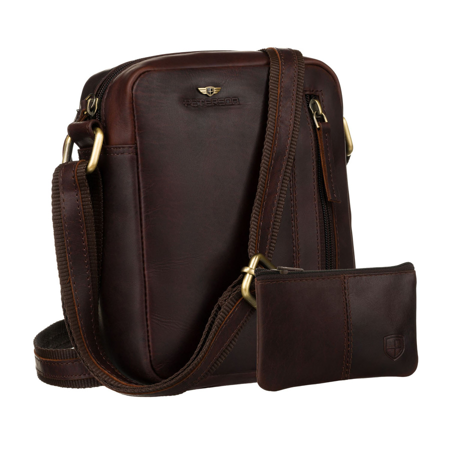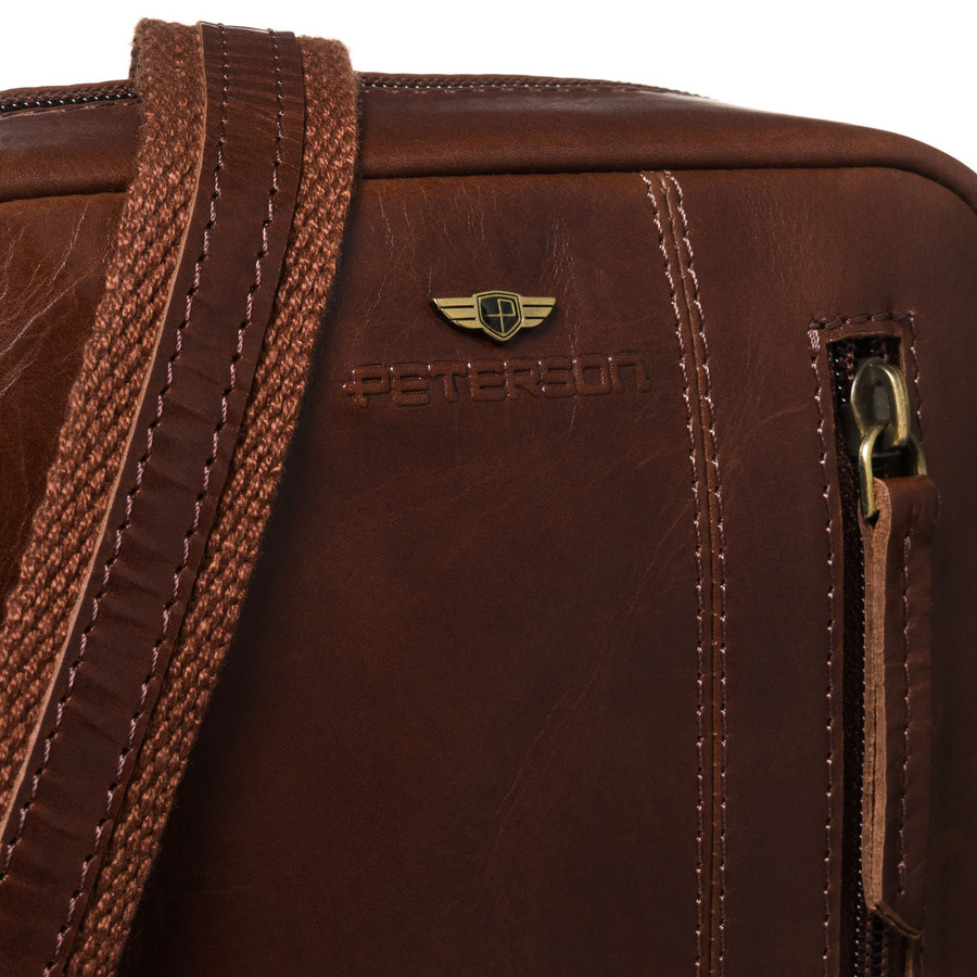 Skórzana listonoszka męska w brązowym kolorze zawieszona na regulowanym pasku - Peterson