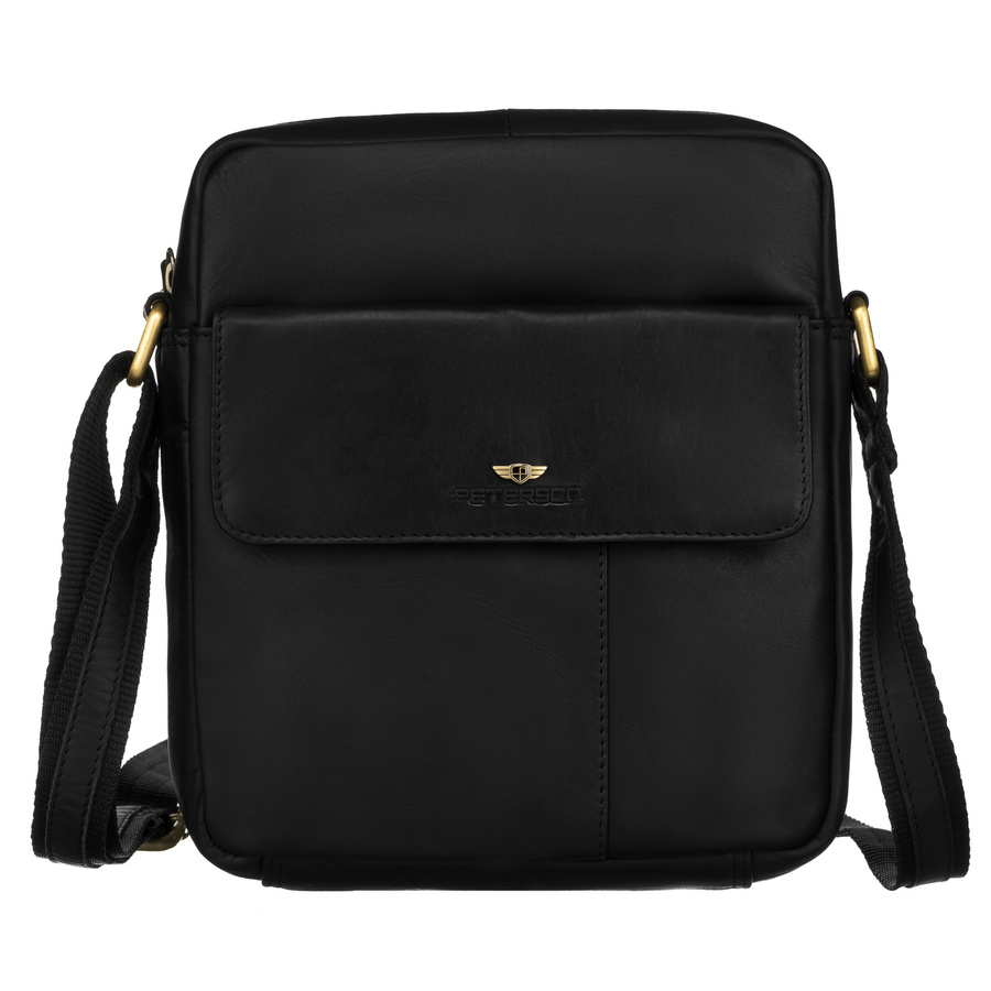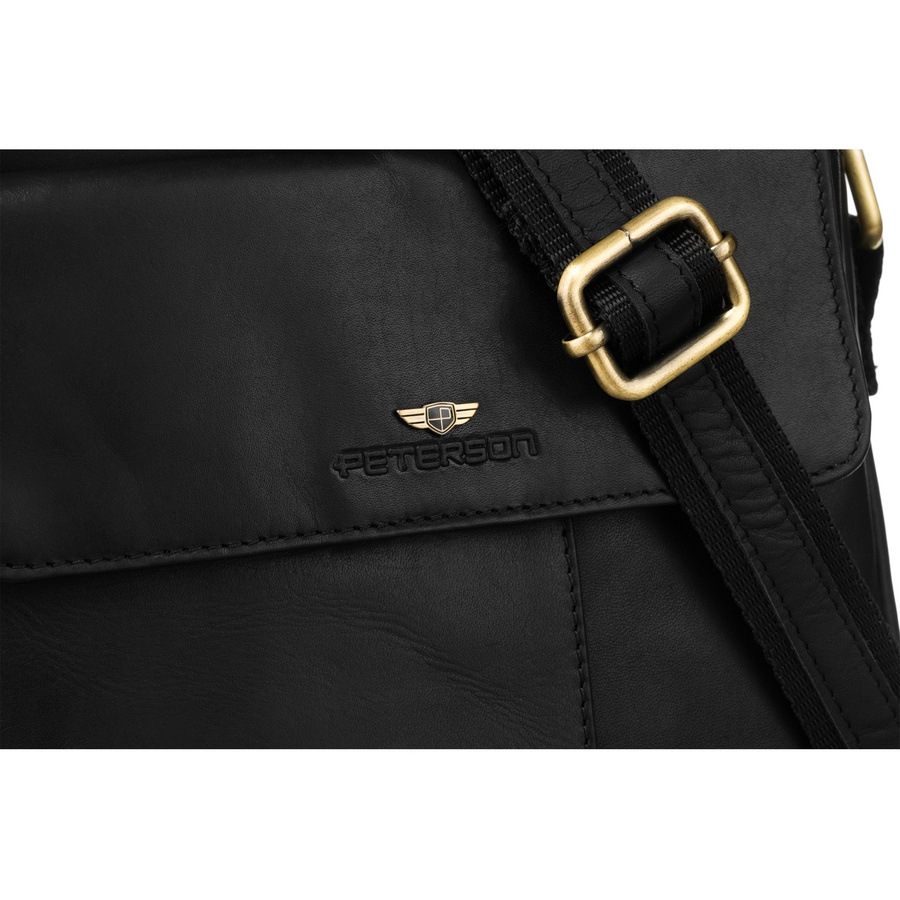 Skórzana, czarna listonoszka męska do pracy z saszetką w zestawie - Peterson