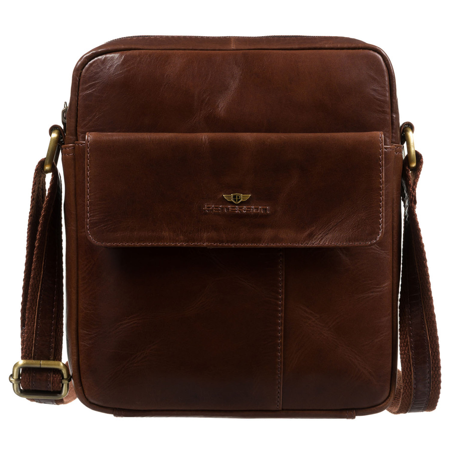 Skórzana listonoszka męska w brązowym kolorze z saszetką w zestawie - Peterson