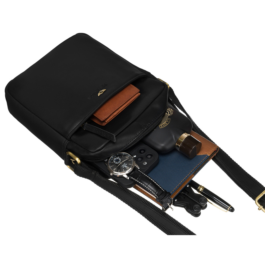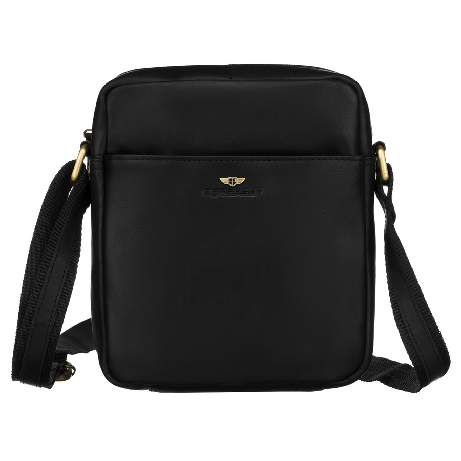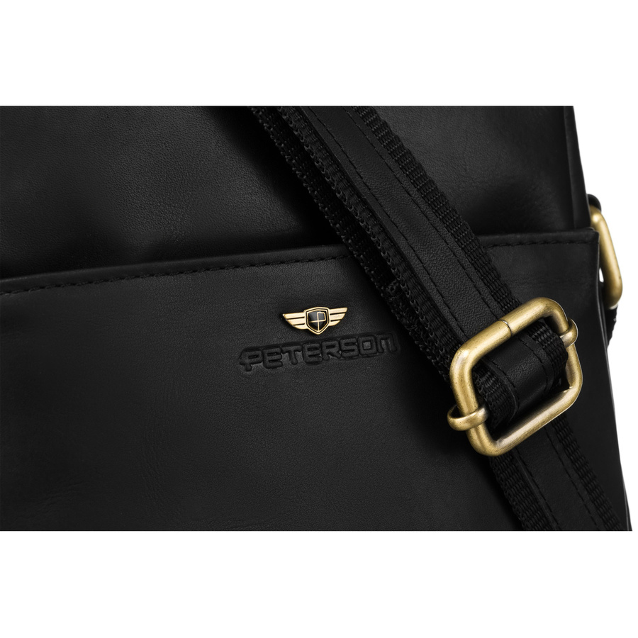 Klasyczna, czarna torba-listonoszka ze skóry naturalnej z etui na klucze w zestawie - Peterson