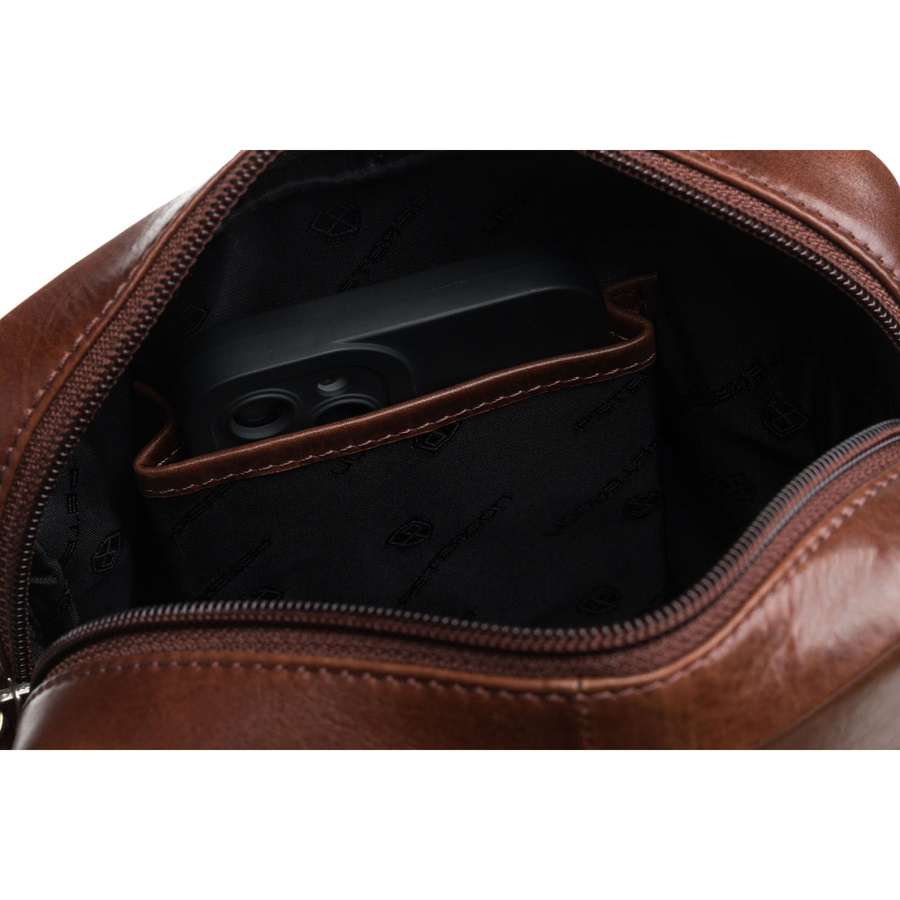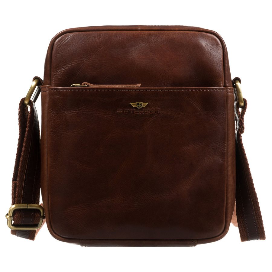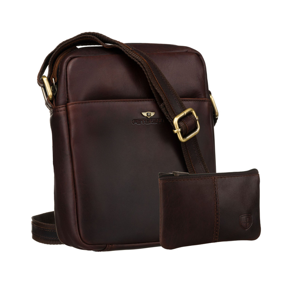 Brązowa torba-listonoszka ze skóry naturalnej z etui na klucze w zestawie - Peterson
