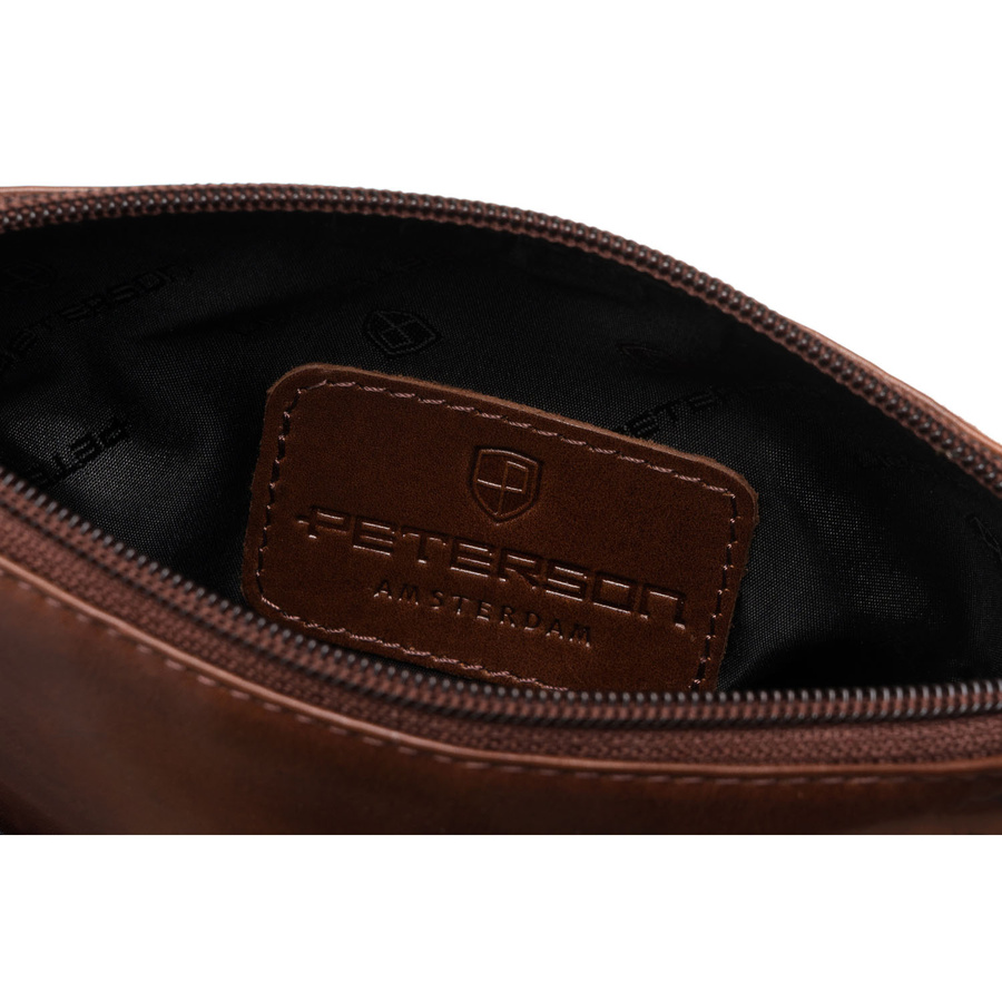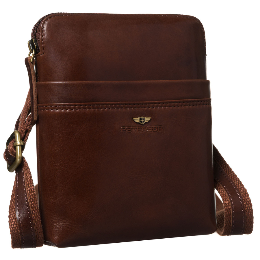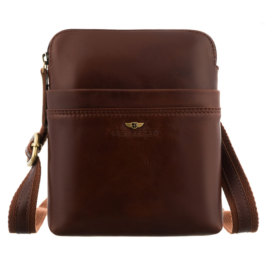 Brązowa, praktyczna listonoszka męska ze skóry naturalnej z kieszeniami zewnętrznymi i etui w zestawie - Peterson