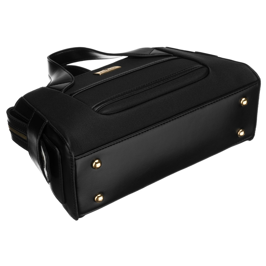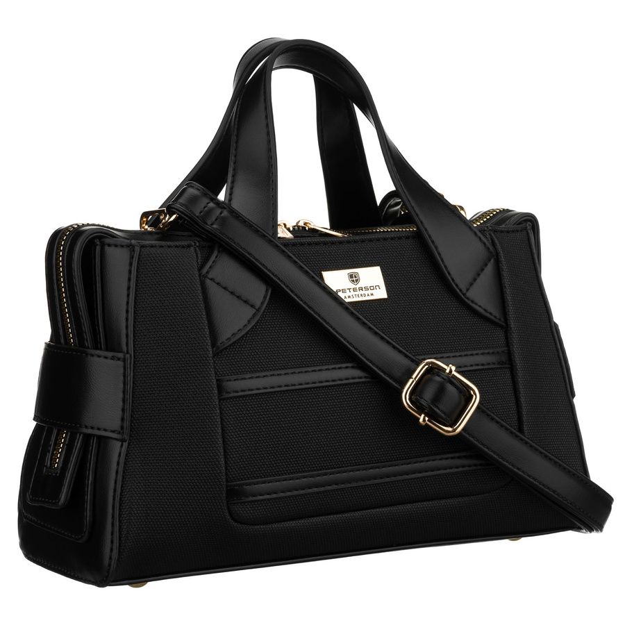 Elegancka, czarna torebka damska wykonana z materiału syntetycznego, zamykana suwakiem - Peterson