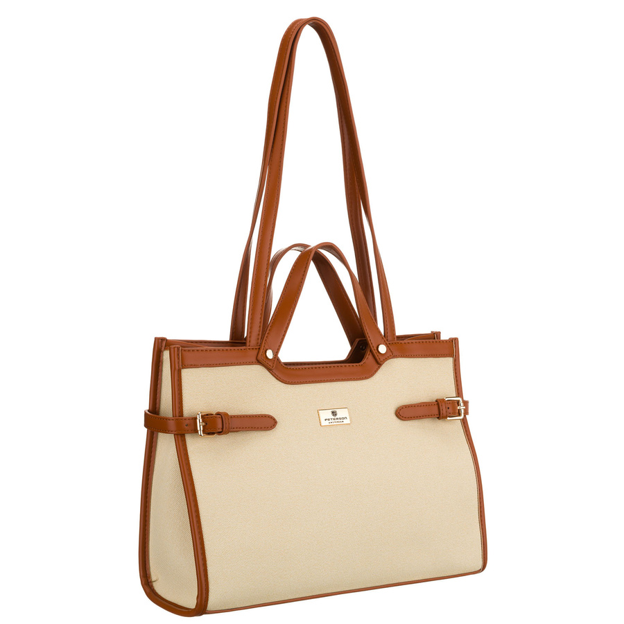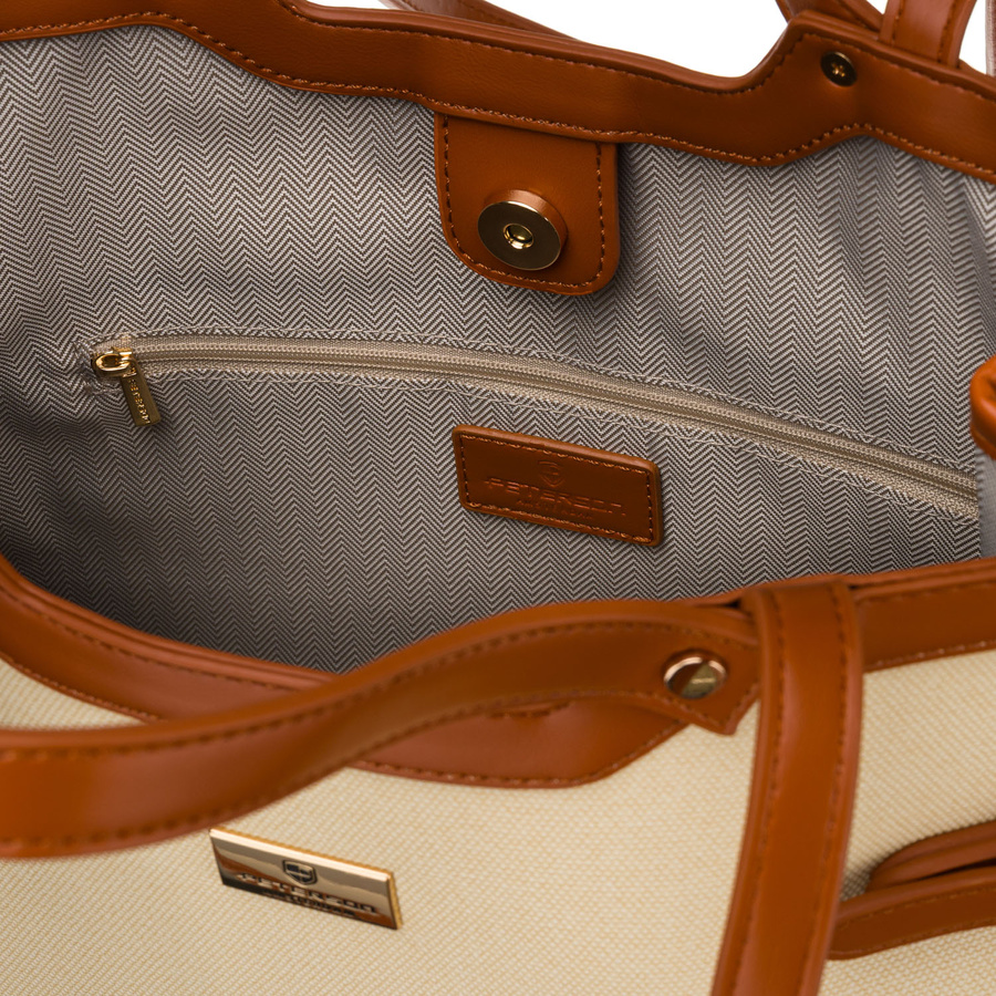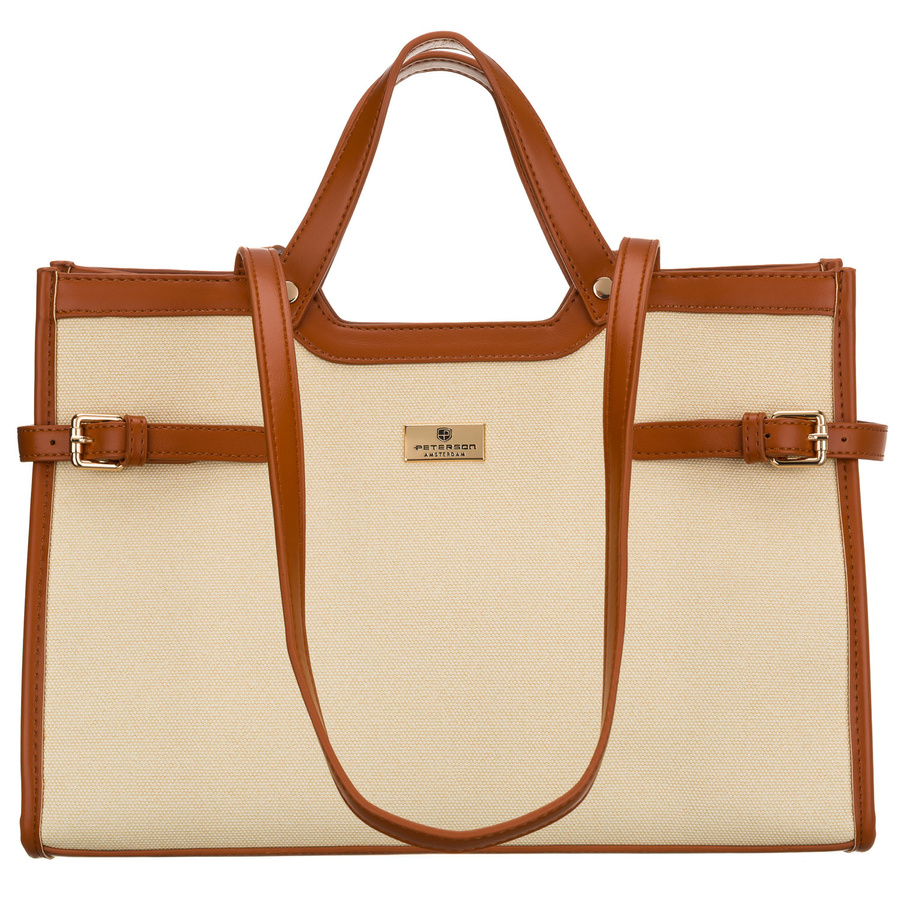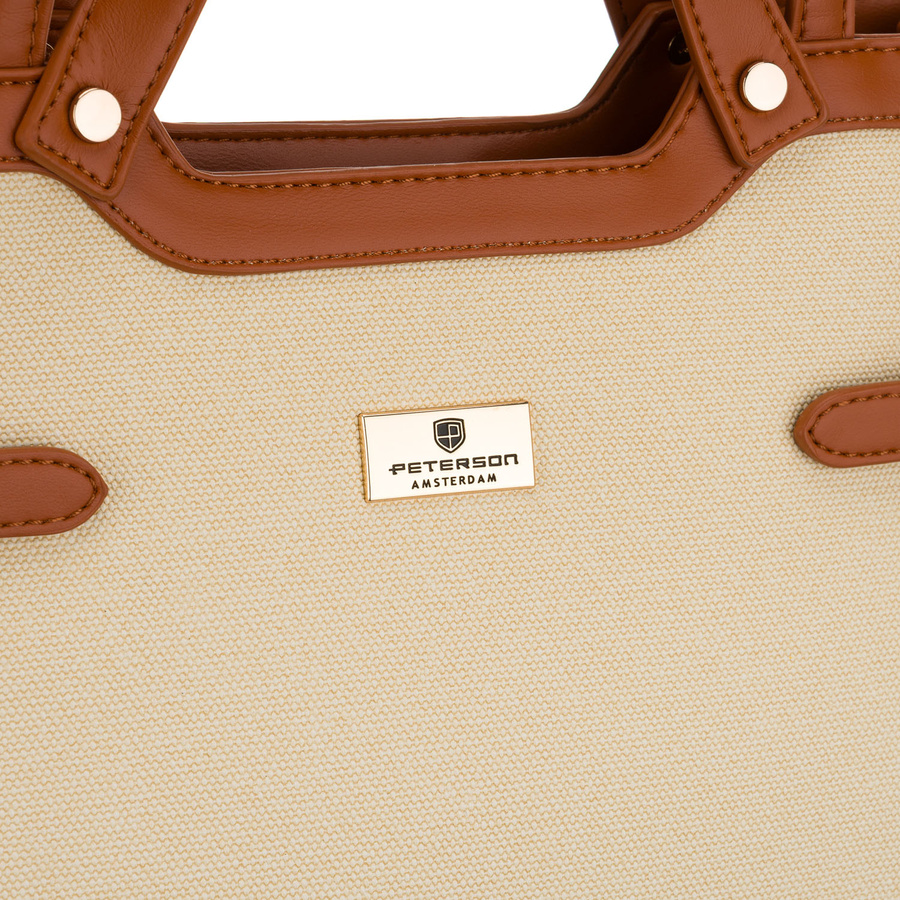Klasyczna, duża torebka damska w kolorach brązowym i ecru - Peterson
