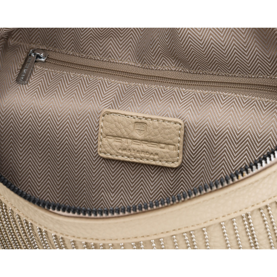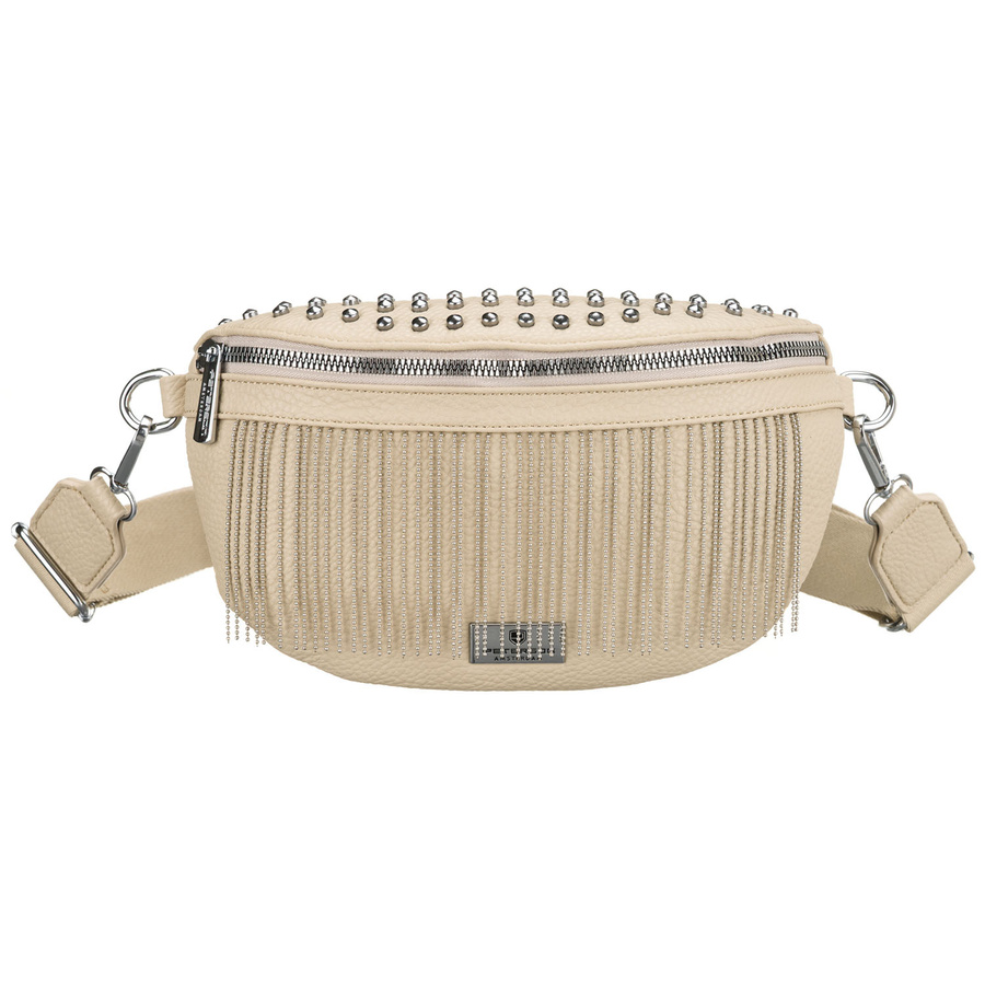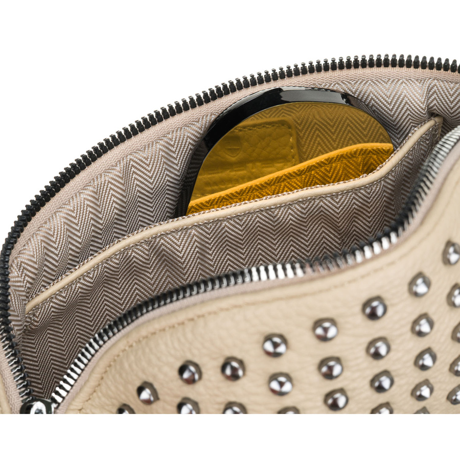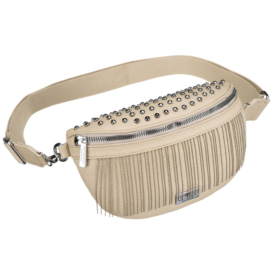 Beżowa saszetka damska wykonana ze skóry ekologicznej, ozdobiona ćwiekami - Peterson