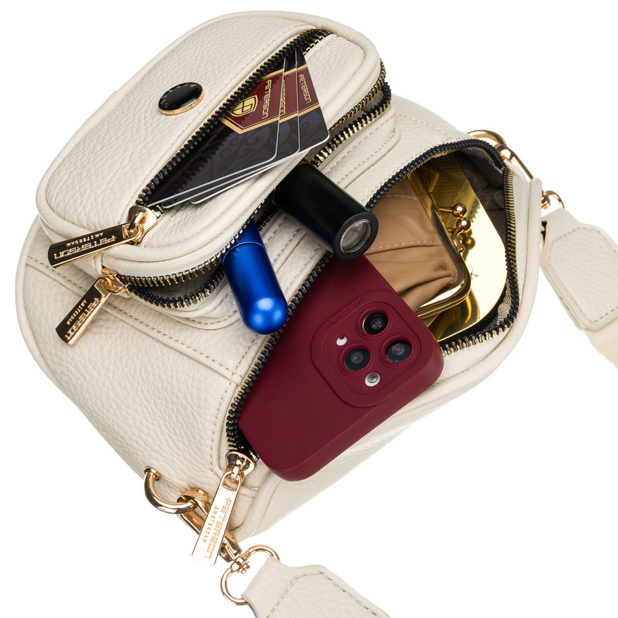 Saszetka damska wykonana ze skóry ekologicznej w jasnobeżowym kolorze - Peterson