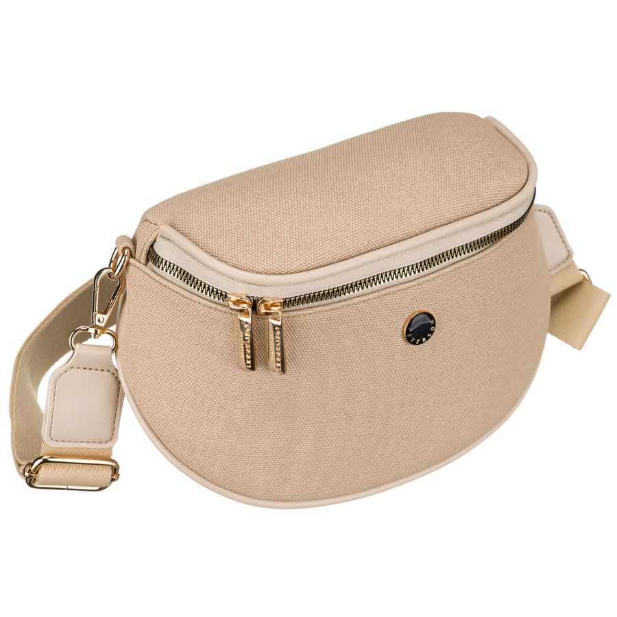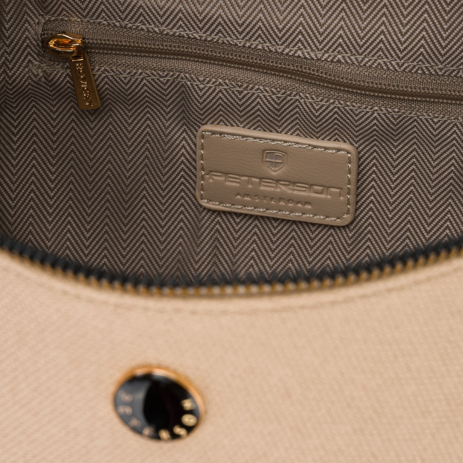Beżowa saszetka damska zamykana suwakiem i zawieszona na regulowanym pasku - Peterson