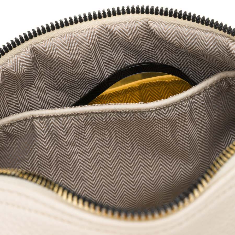 Beżowa saszetka damska ze skóry ekologicznej zamykana suwakiem - Peterson