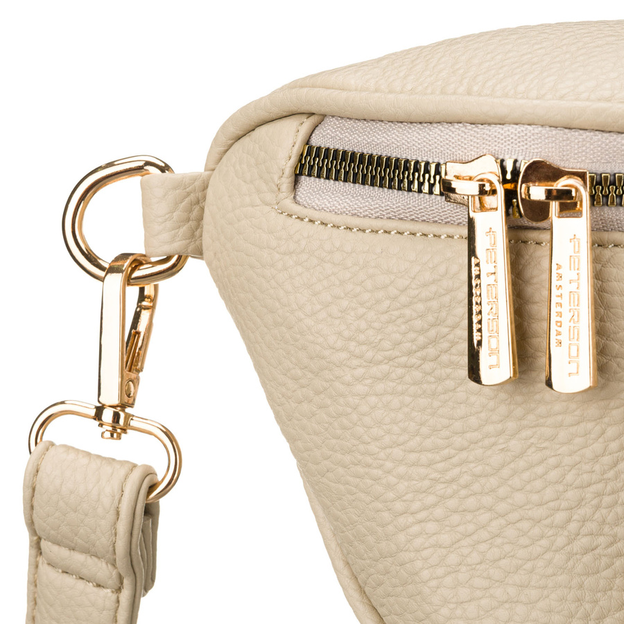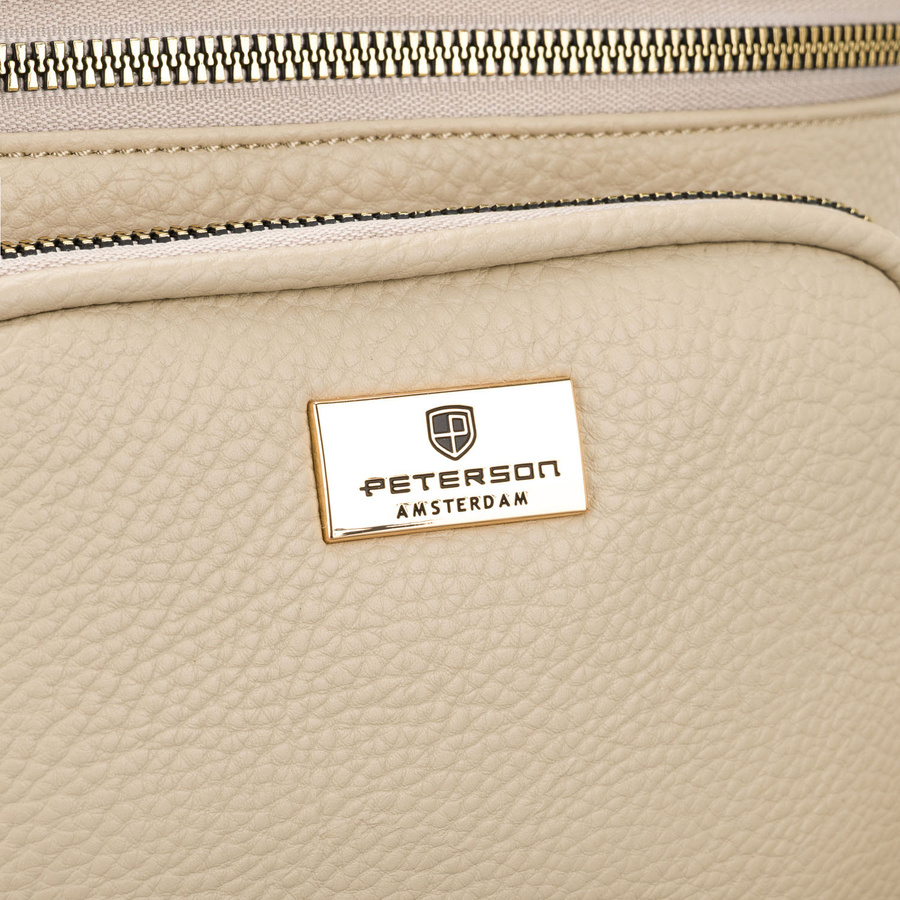 Beżowa saszetka damska ze skóry ekologicznej zamykana suwakiem, jednokomorowa - Peterson