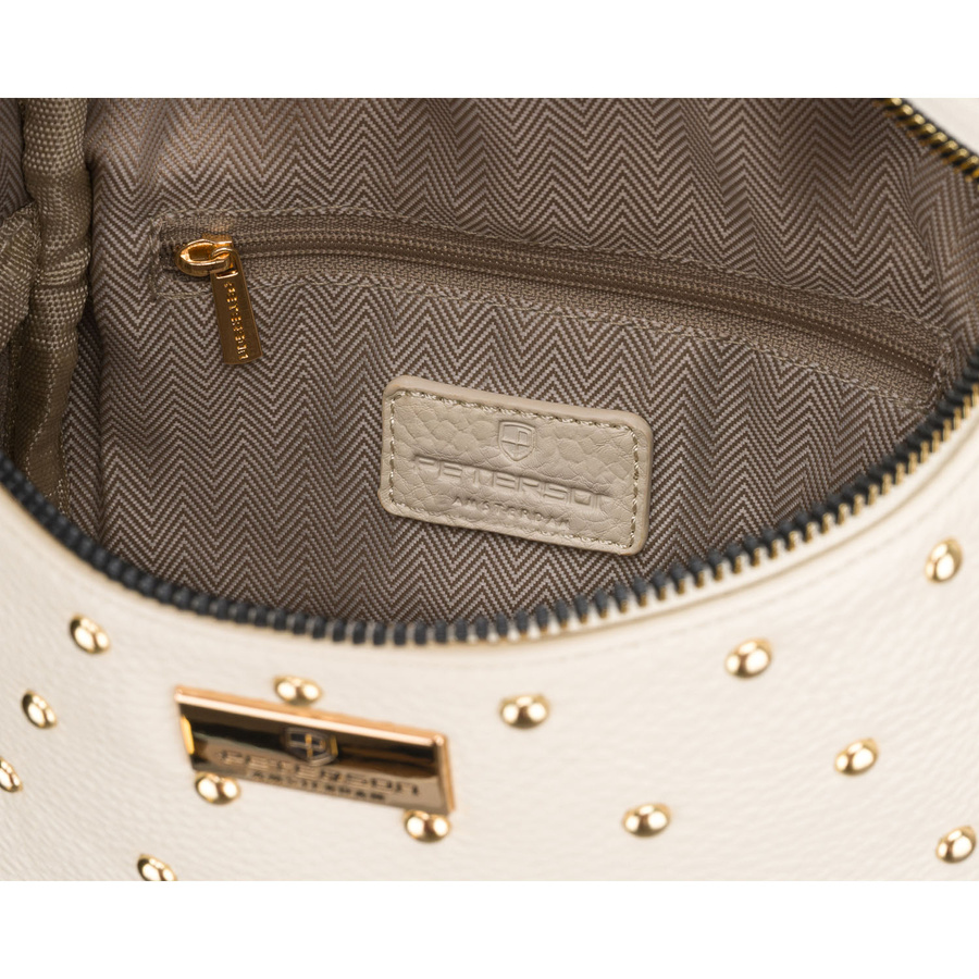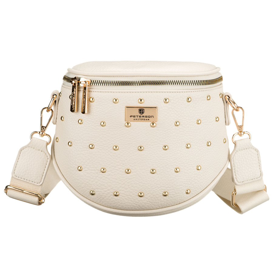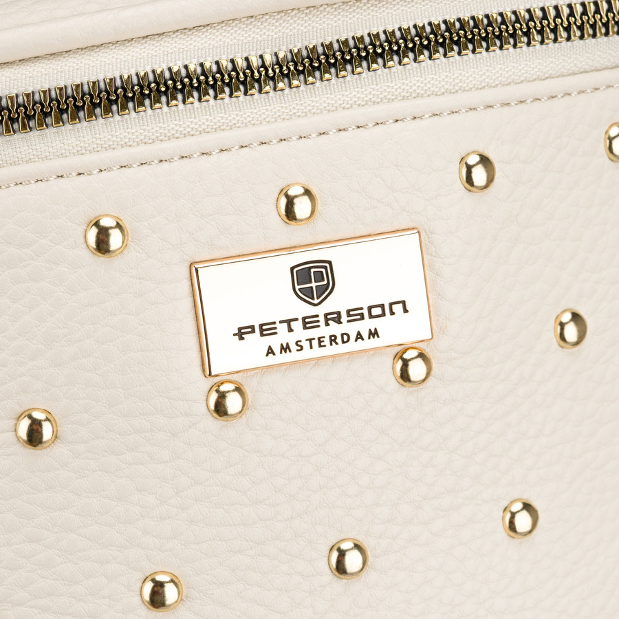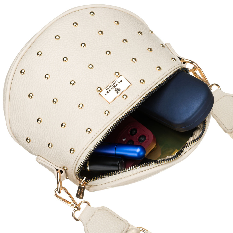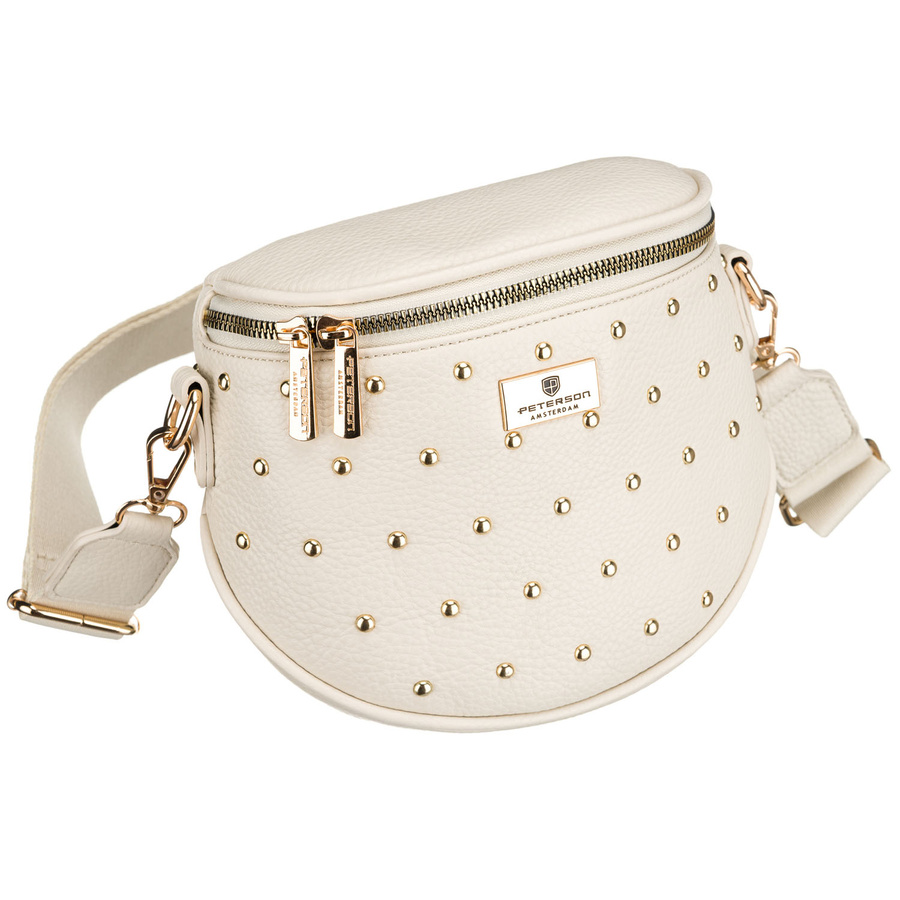 Jasnobeżowa nerka damska ze skóry ekologicznej ozdobiona ćwiekami - Peterson