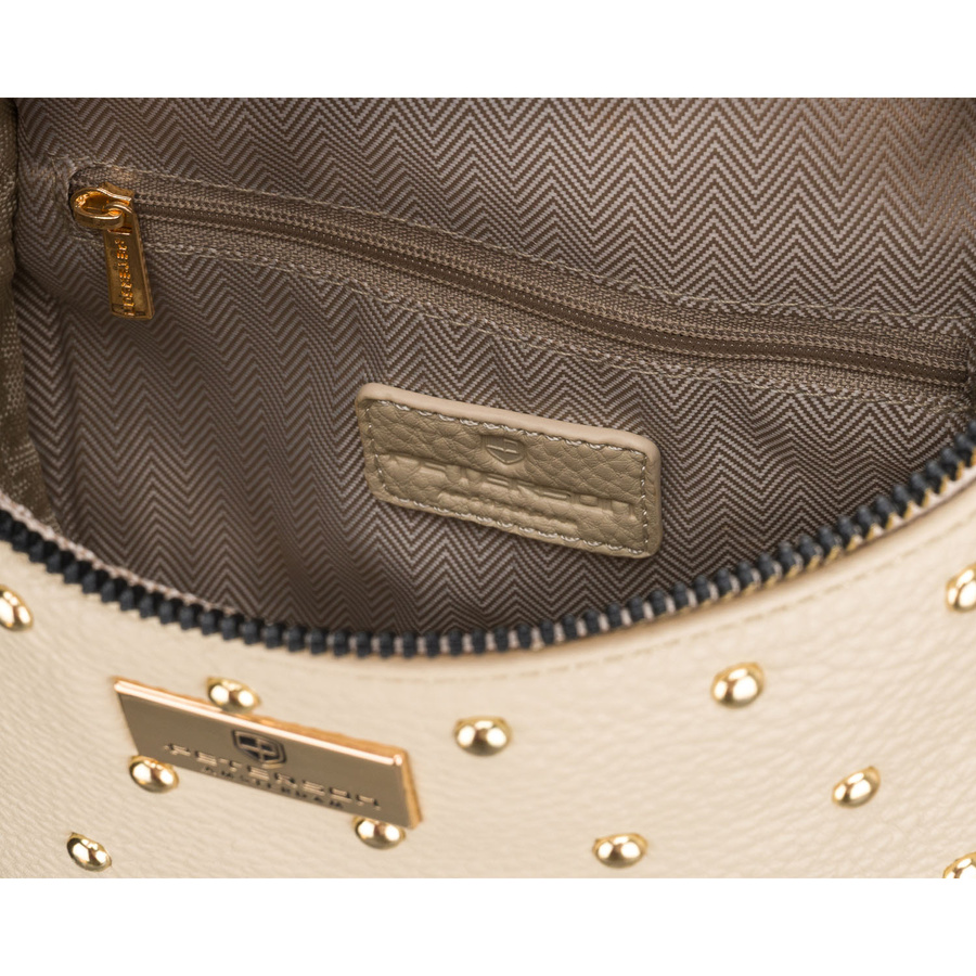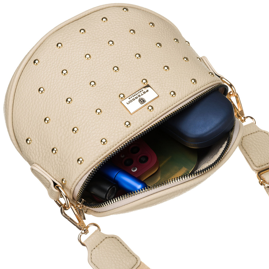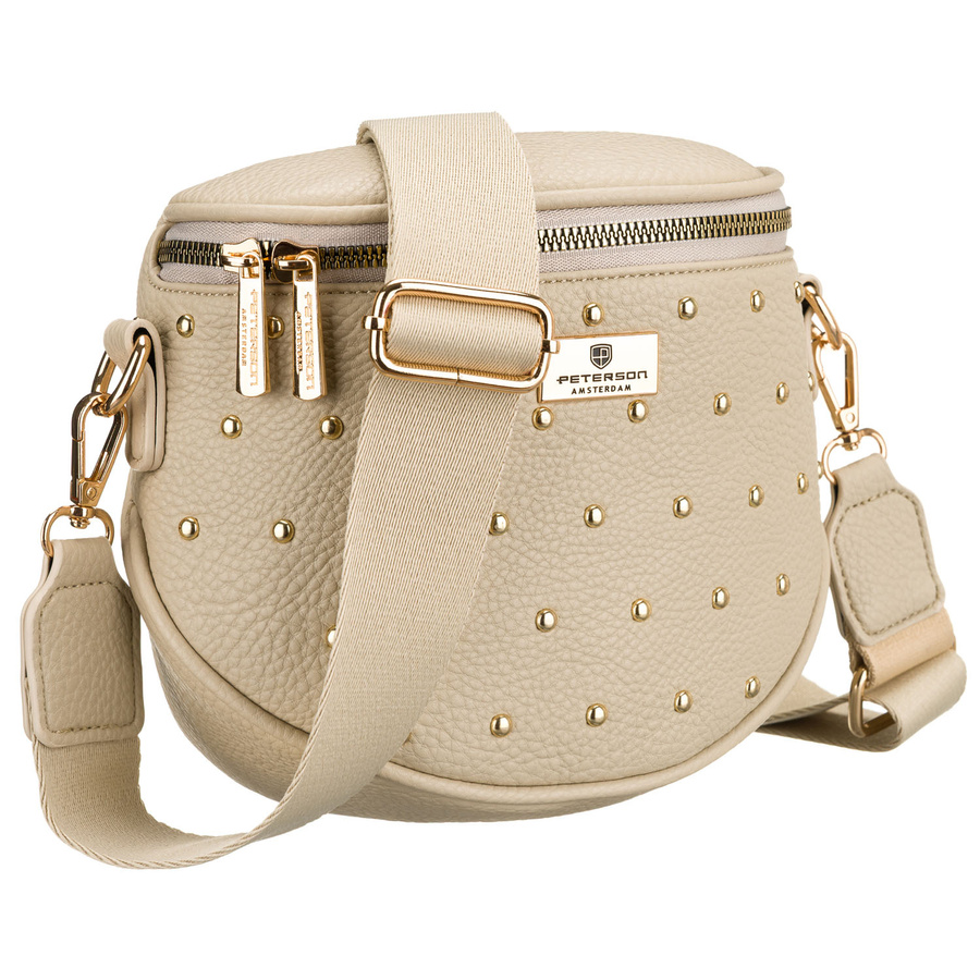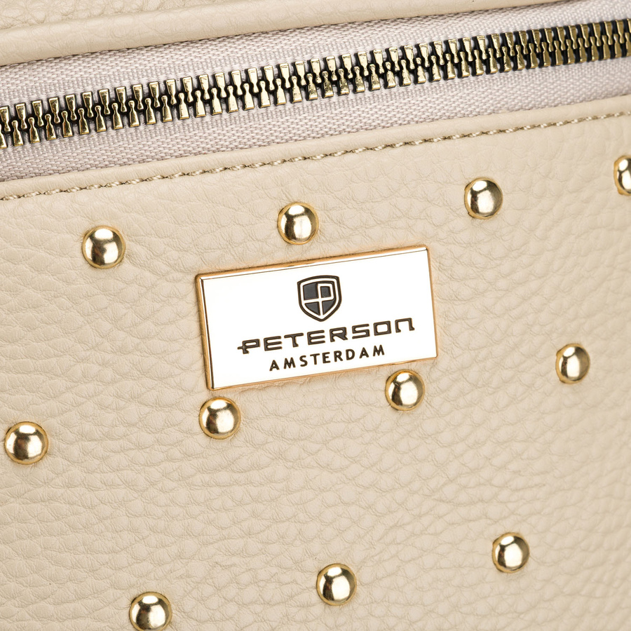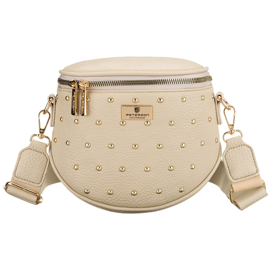 Beżowa nerka damska ze skóry ekologicznej ozdobiona ćwiekami - Peterson