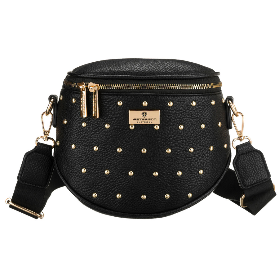 Czarna, praktyczna nerka damska ze skóry ekologicznej ozdobiona ćwiekami - Peterson