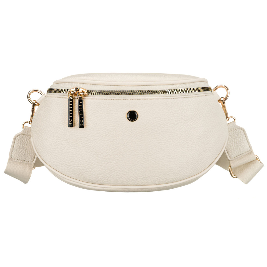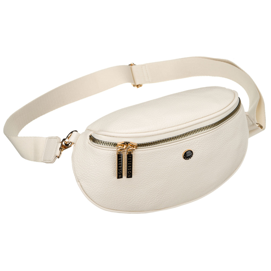 Modna, jasnobeżowa nerka damska ze skóry ekologicznej - Peterson