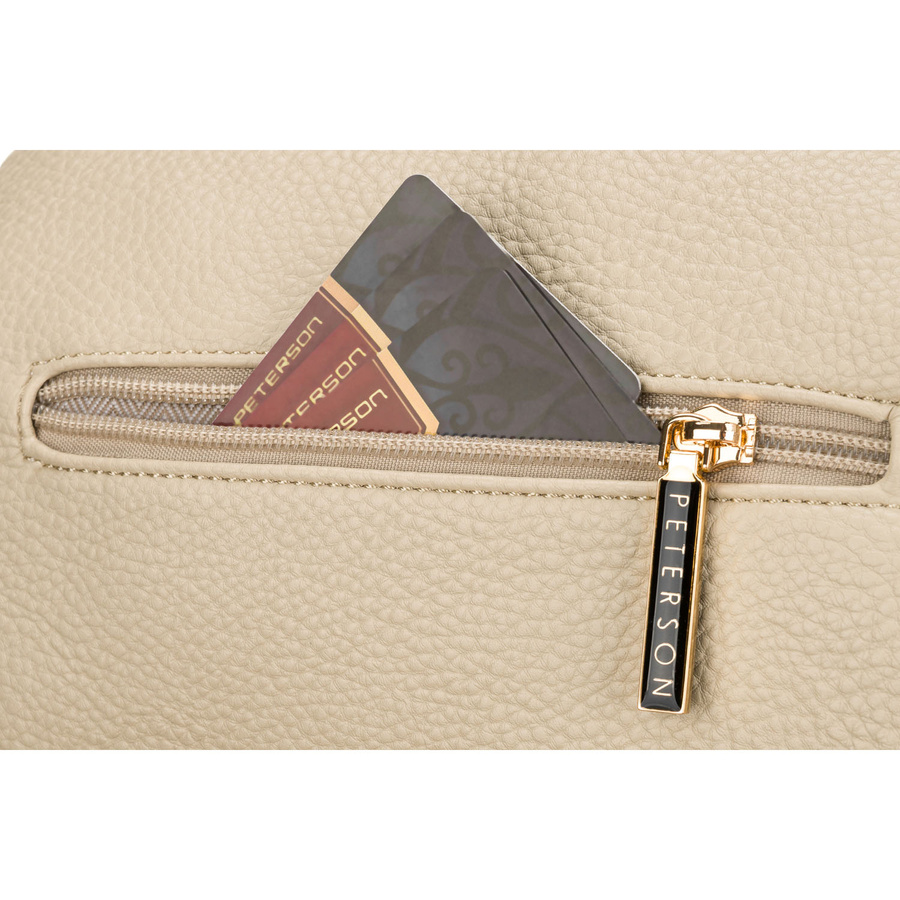 Beżowa, praktyczna, miejska nerka damska ze skóry ekologicznej, jednokomorowa - Peterson