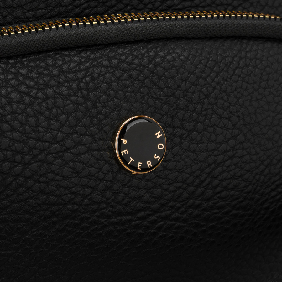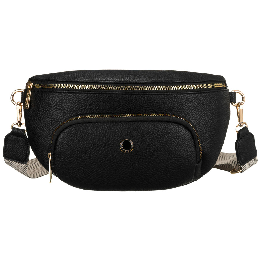 Miejska, czarna nerka damska ze skóry ekologicznej zawieszona na regulowanym pasku - Peterson