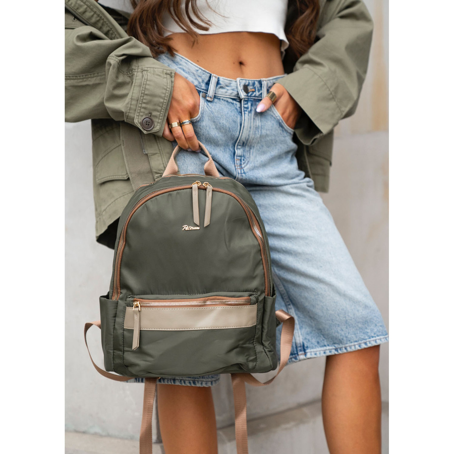 Zielony, miejski plecak damski z poliestru zamykany suwakami - Peterson