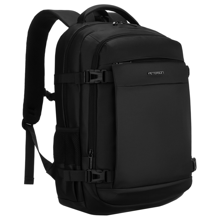 Duży plecak podróżny w czarnym kolorze z miejscem na laptopa, zamykany suwakiem - Peterson