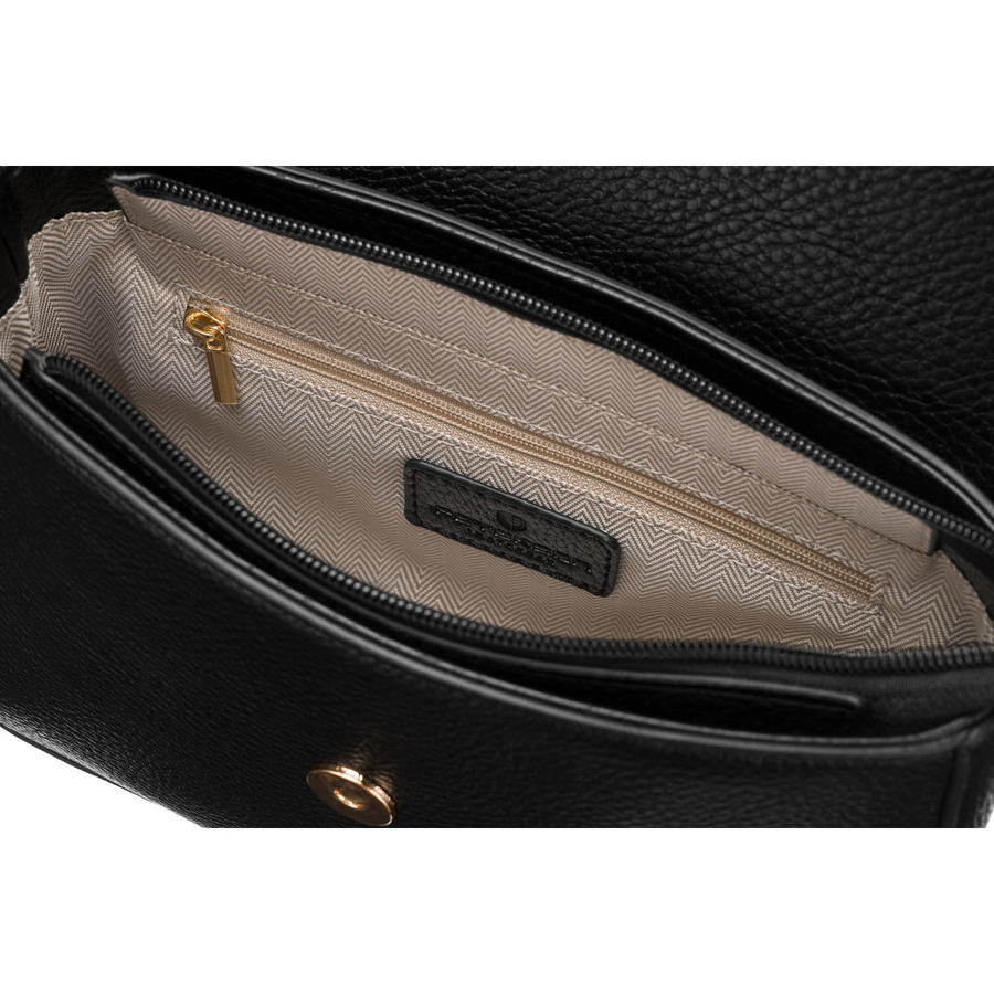Dzięki sprytnej organizacji wnętrza, ta czarna torebka miejska sprawdzi się zarówno na co dzień, jak i w podróży.