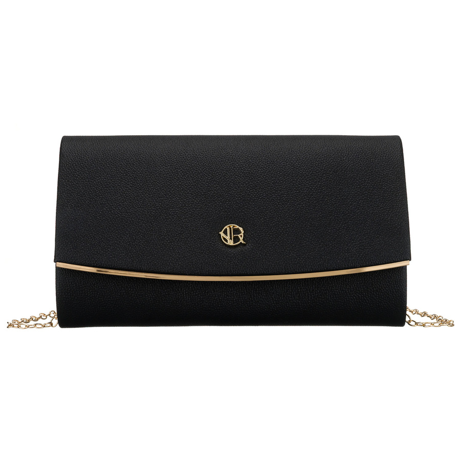 Czarna kopertówka damska wykonana ze skóry ekologicznej, zapinana klipsem magnetycznym - Rovicky