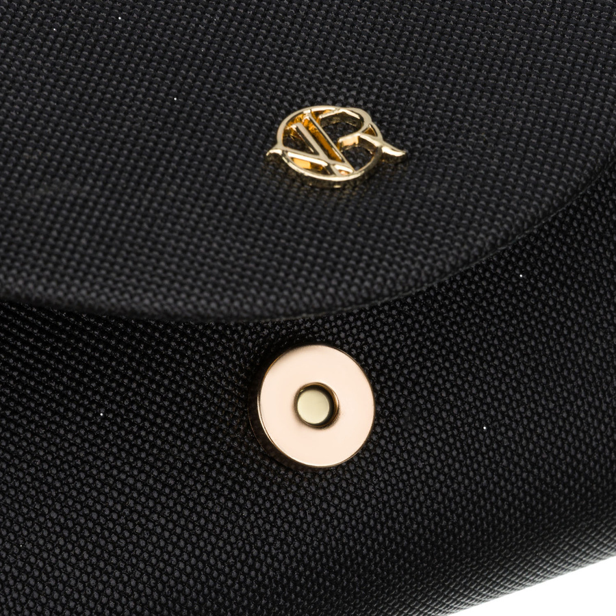 Brokatowa kopertówka damska wykonana z tkaniny syntetycznej w czarnym kolorze - Rovicky