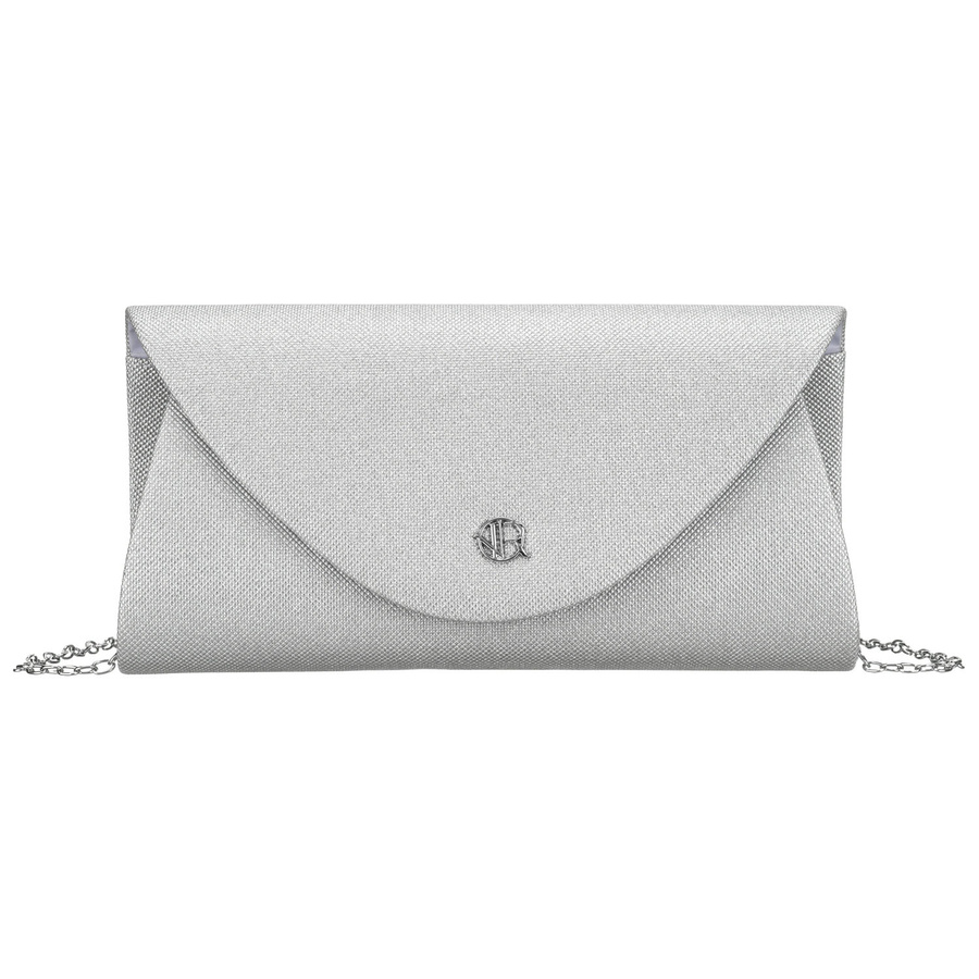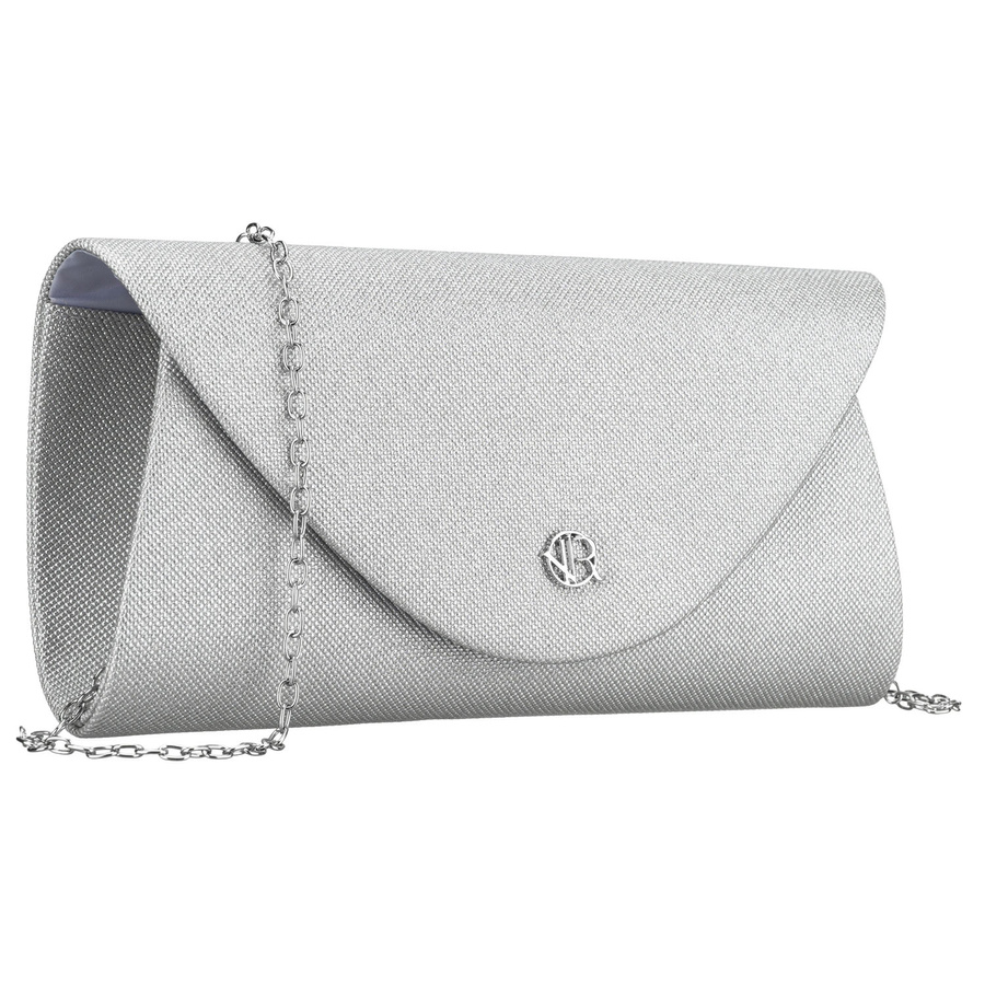 Brokatowa kopertówka damska wykonana z tkaniny syntetycznej w srebrnym kolorze - Rovicky