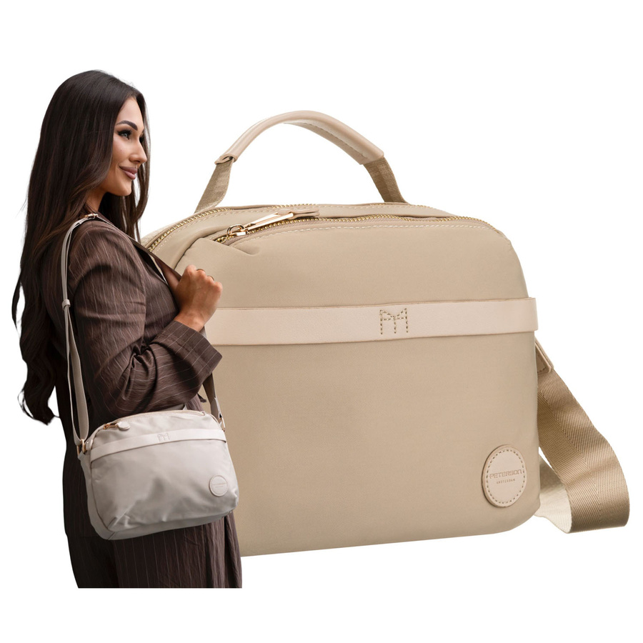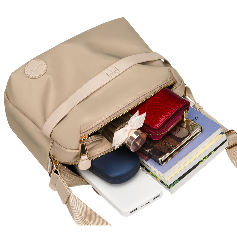 Listonoszka damska z nylonu w beżowym kolorze, jednokomorowa i zamykana suwakiem - Peterson