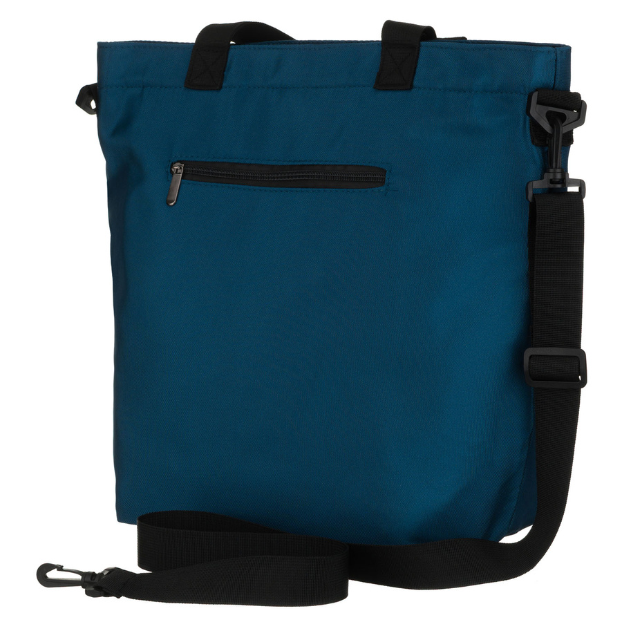Turkusowa shopperka damska zawieszona na wygodnych uchwytach i doczepianym pasku, zamykana suwakiem - Peterson