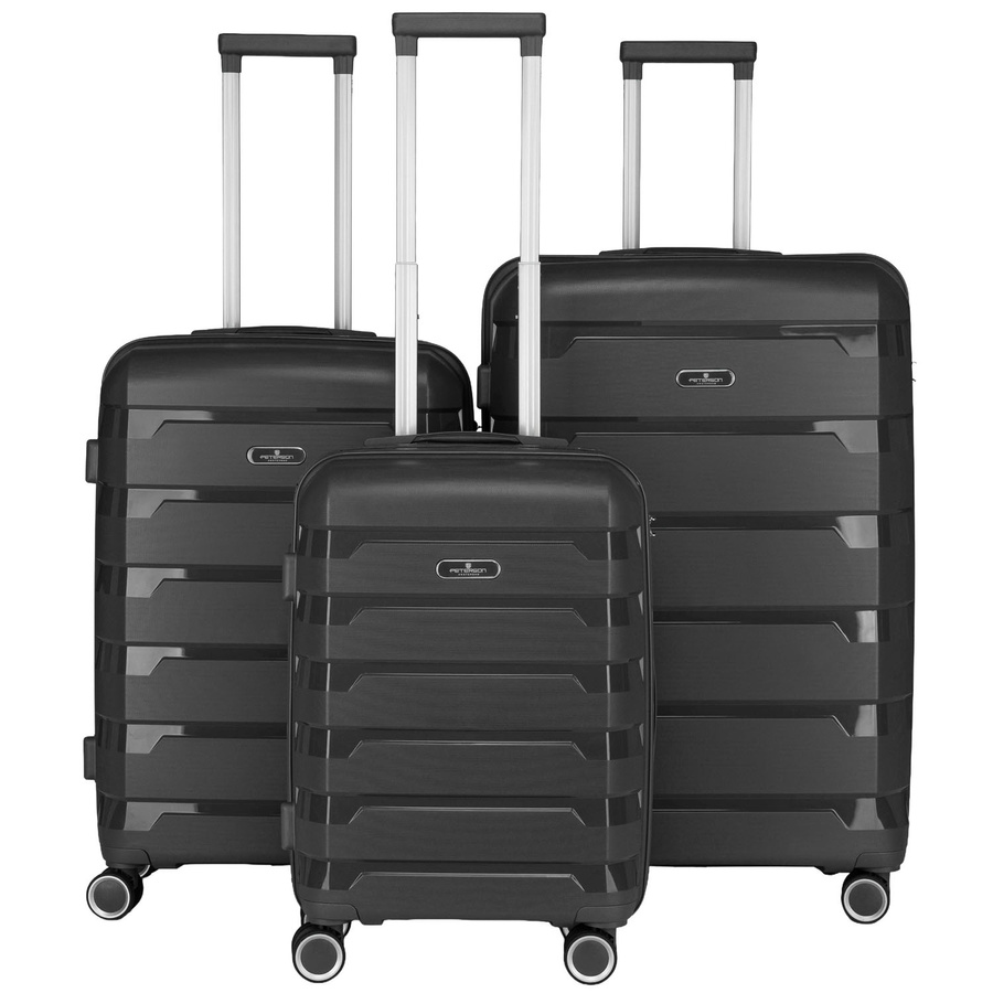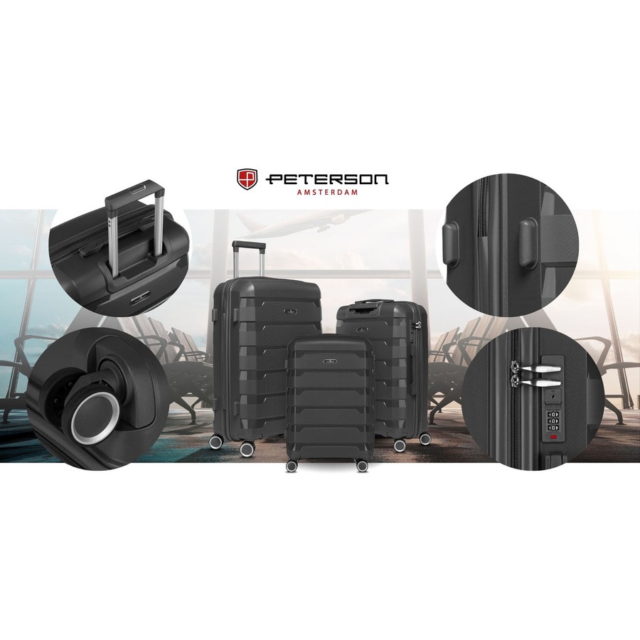 Zestaw walizek w szarym kolorze wykonanych z polipropylenu z obrotowymi kółkami na spodzie - Peterson