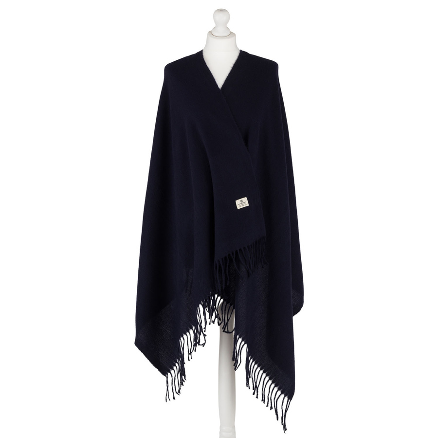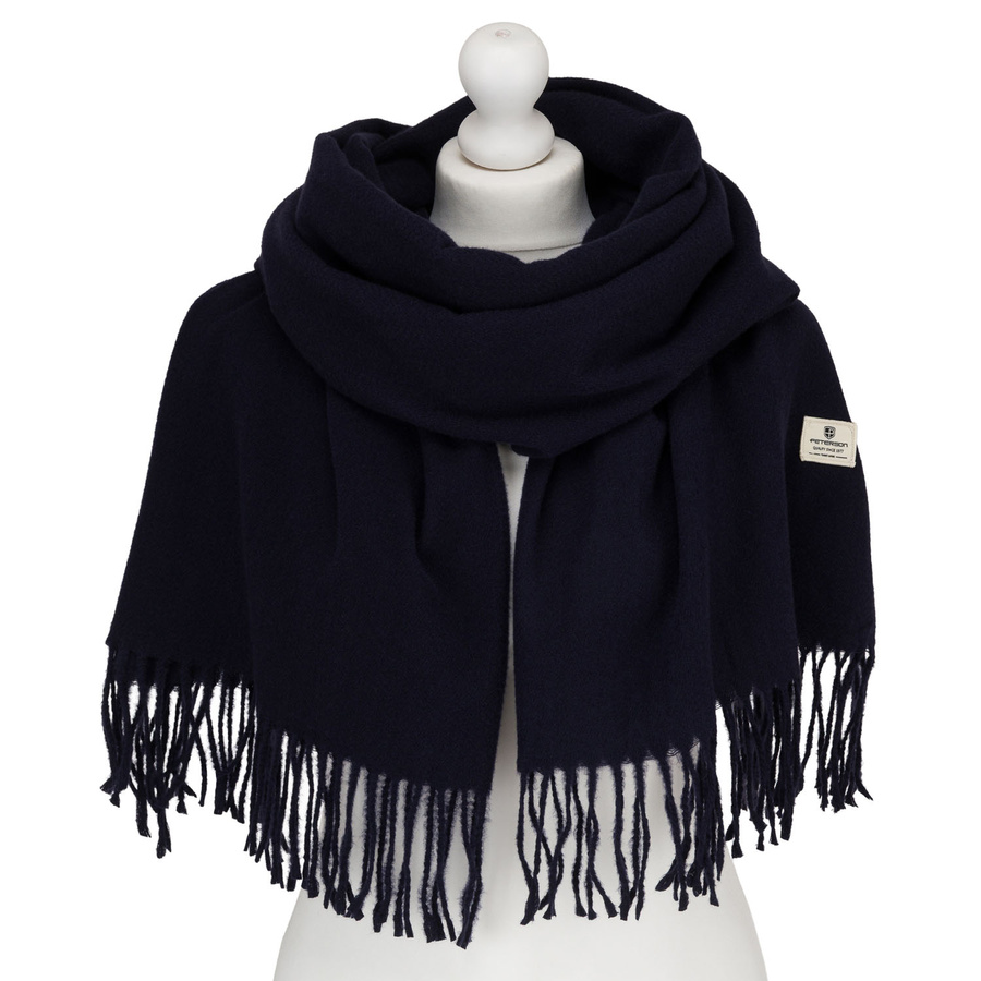 Granatowy, elegancki szalik damski z poliestru z frędzlami - Peterson