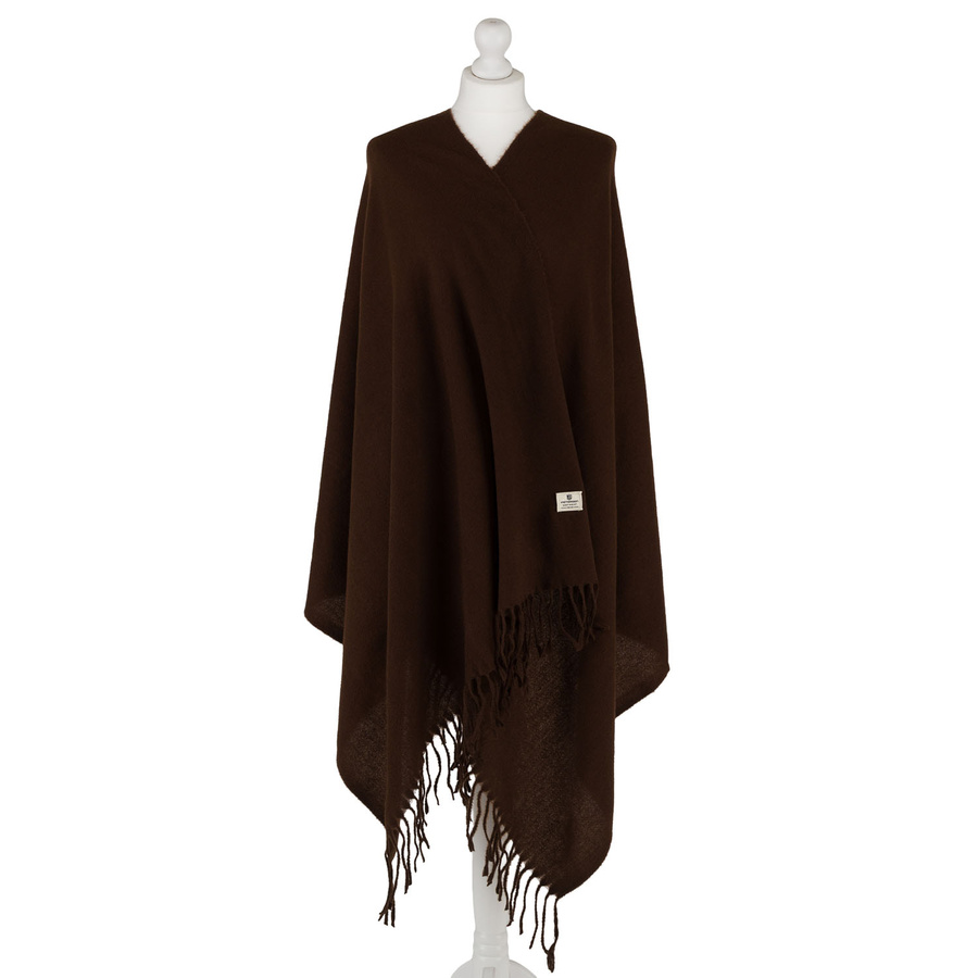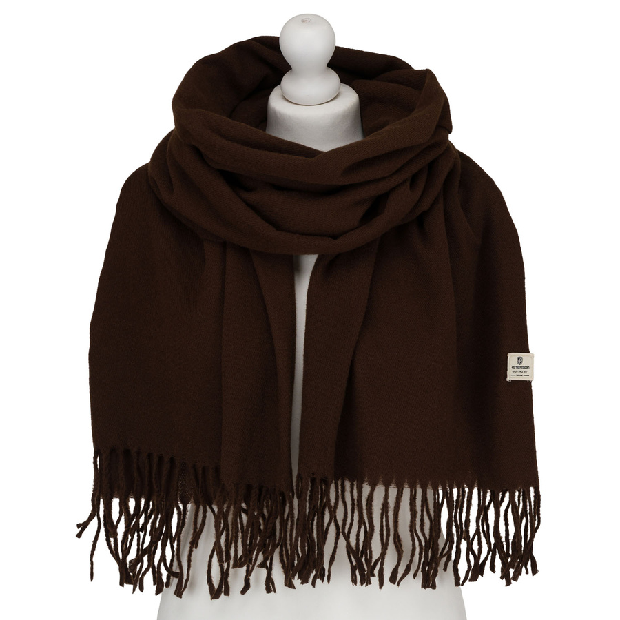 Duży, brązowy szal damski ozdobiony frędzlami - Peterson