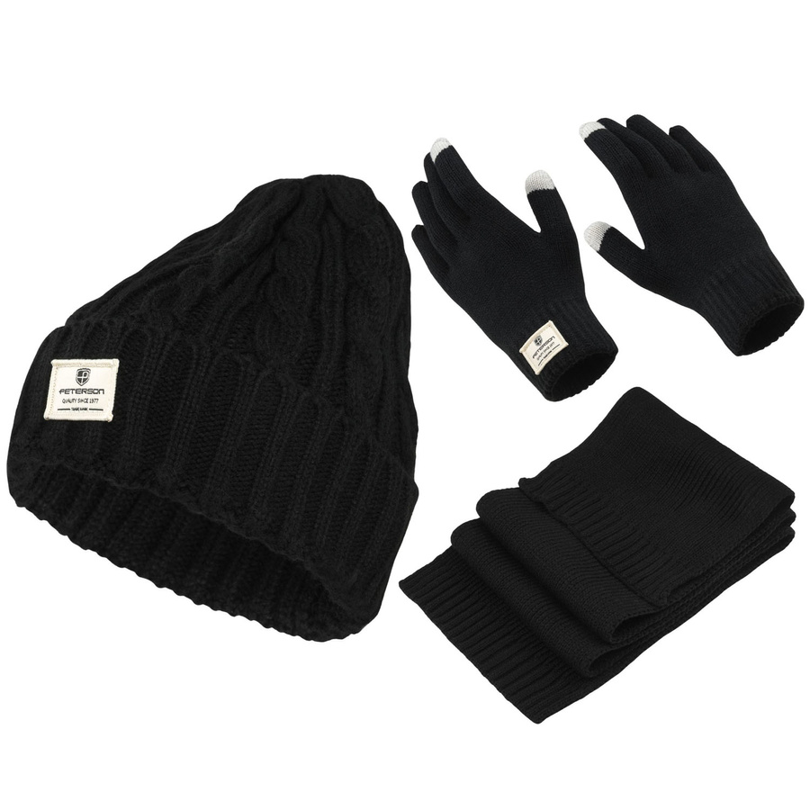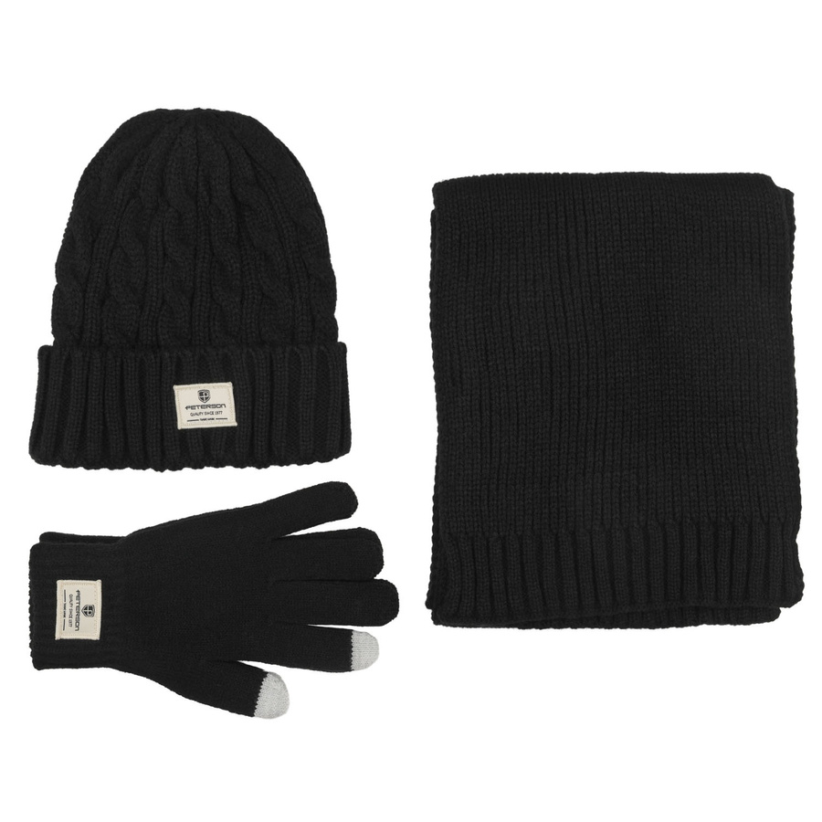 Zestaw: czarne czapka, rękawiczki i szalik - Peterson