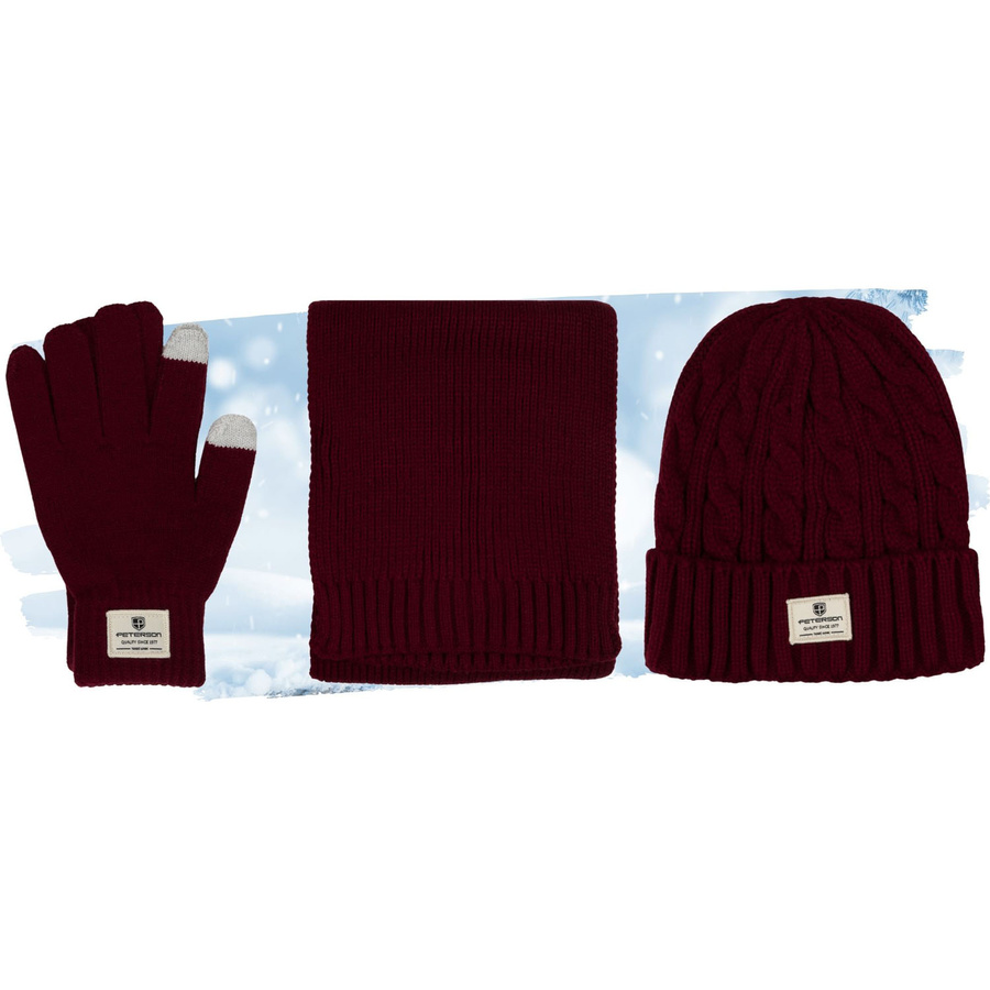 Zestaw: czapka, rękawiczki i szalik w bordowym kolorze - Peterson