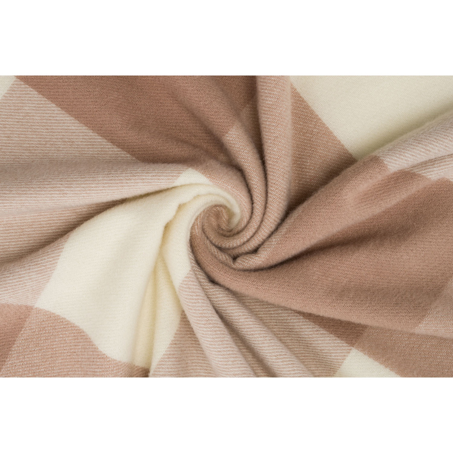 Duży, jasnobrązowy szal damski ozdobiony frędzlami - Rovicky
