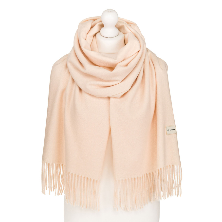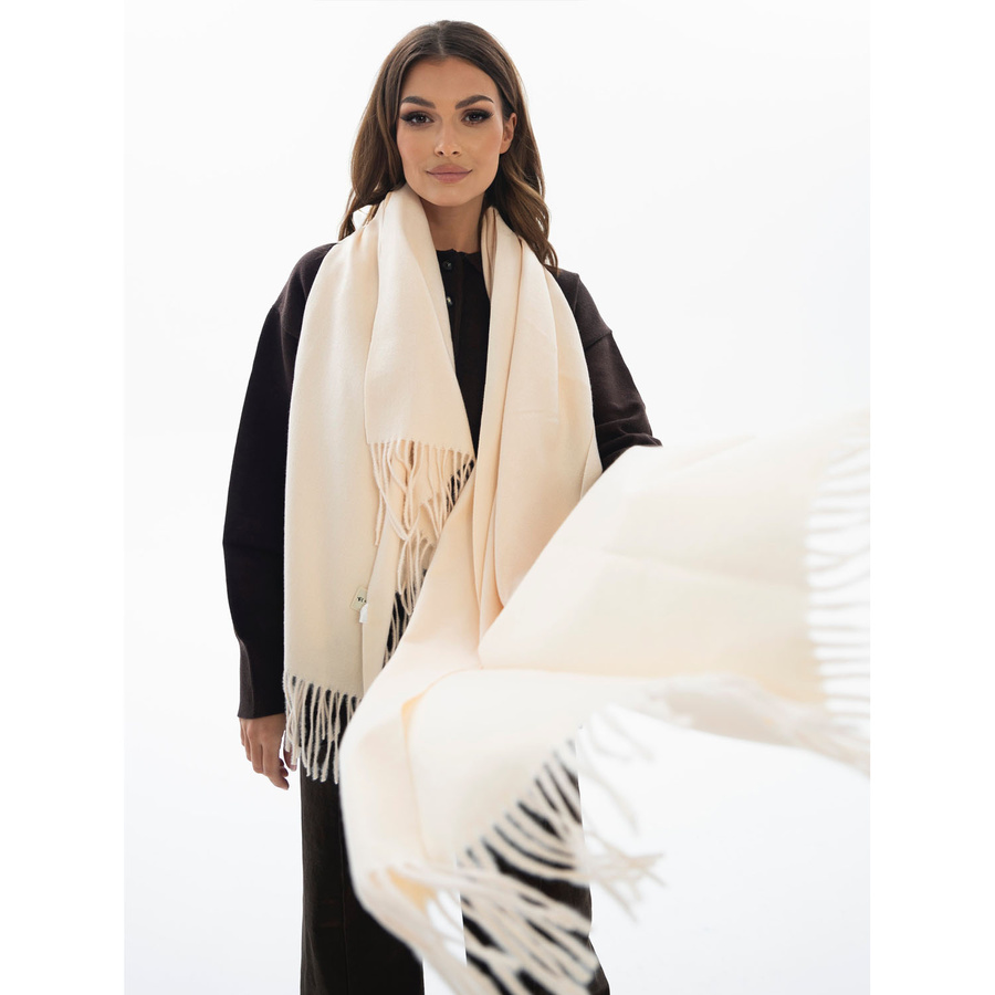 Szal damski z poliestru i wiskozy w beżowo-ecru kolorze ozdobiony frędzlami - Rovicky