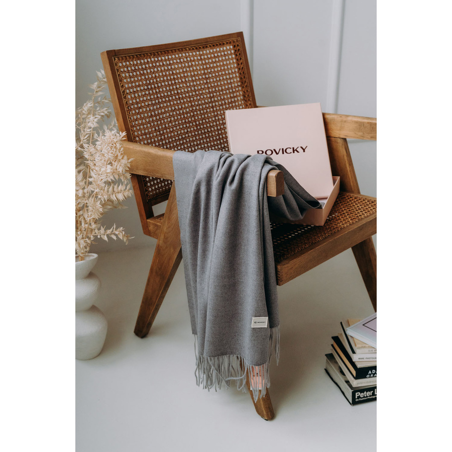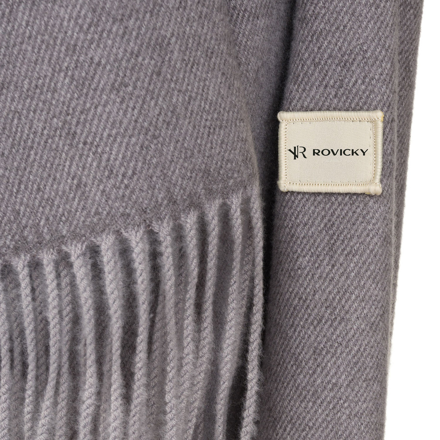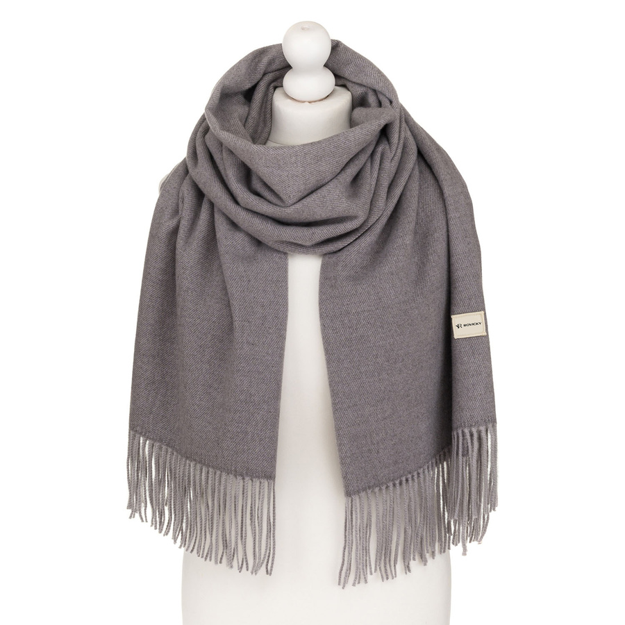 Szal damski z poliestru i wiskozy w szarym kolorze ozdobiony frędzlami - Rovicky