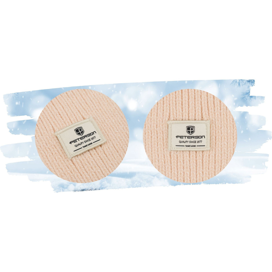 Beżowa zimowa czapka damska beanie w uniwersalnym rozmiarze z logo marki - Peterson