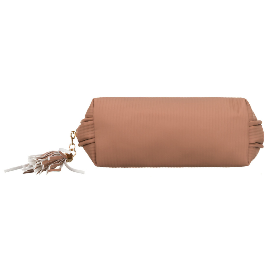 Kosmetyczka z materiału syntetycznego w beżowym kolorze, jednokomorowa zamykana suwakiem - Peterson