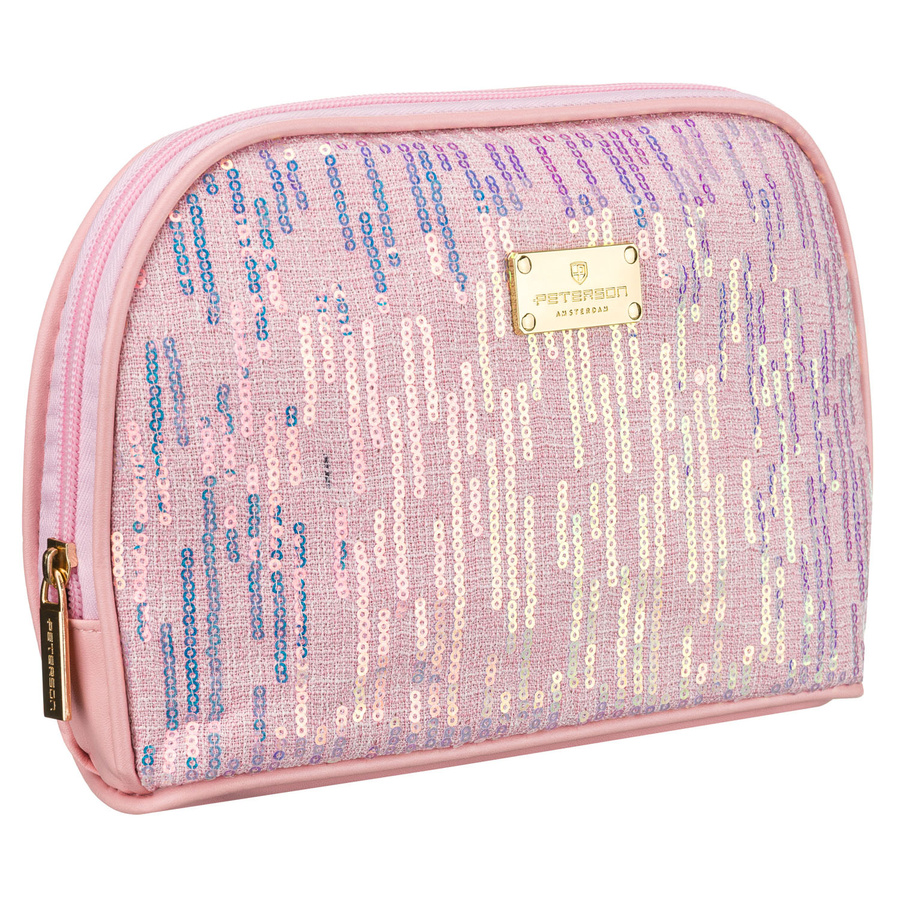 Różowa kosmetyczka z materiału syntetycznego, jednokomorowa - Peterson