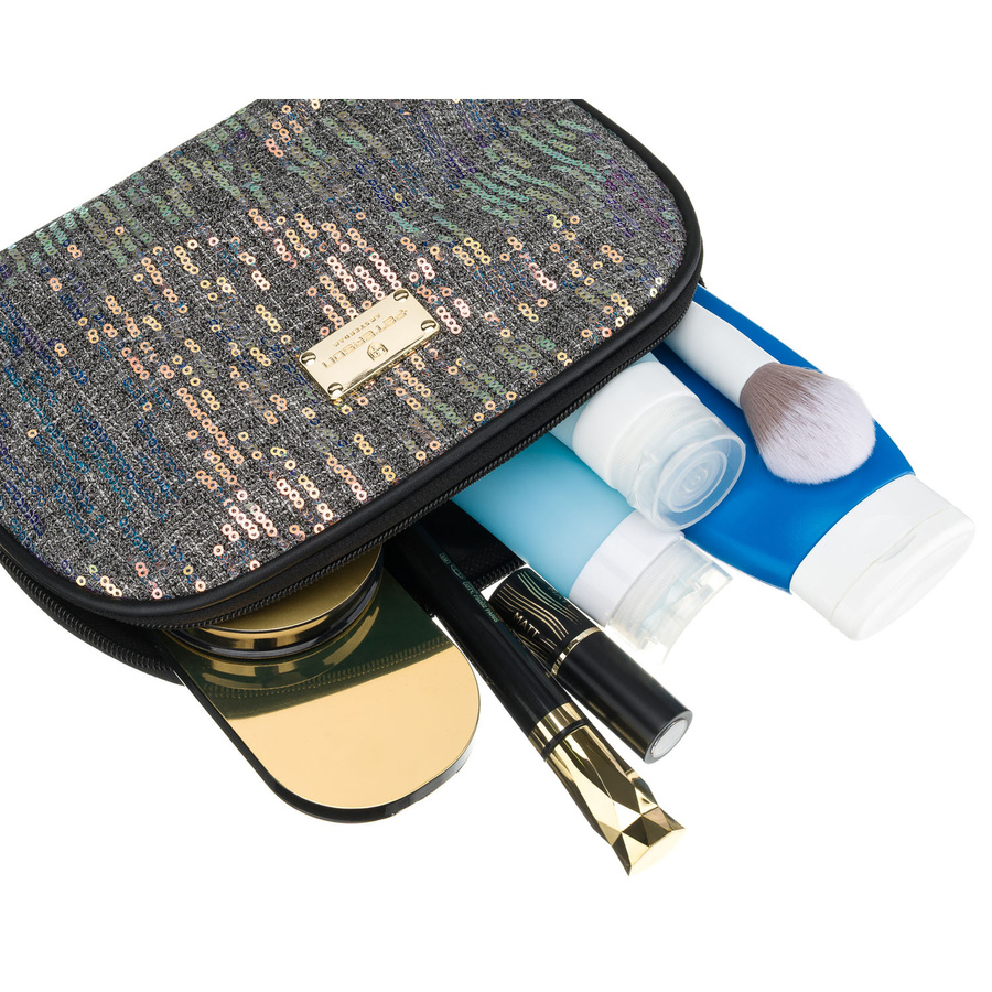 - Miękka forma, dzięki której kosmetyczka łatwo dopasowuje się do przestrzeni w torbie.