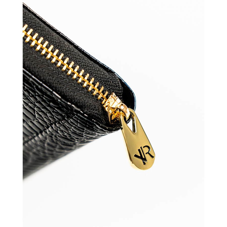 Lakierowany portfel w typie piórnika ze skóry naturalnej w czarnym kolorze zamykany na suwak - Rovicky