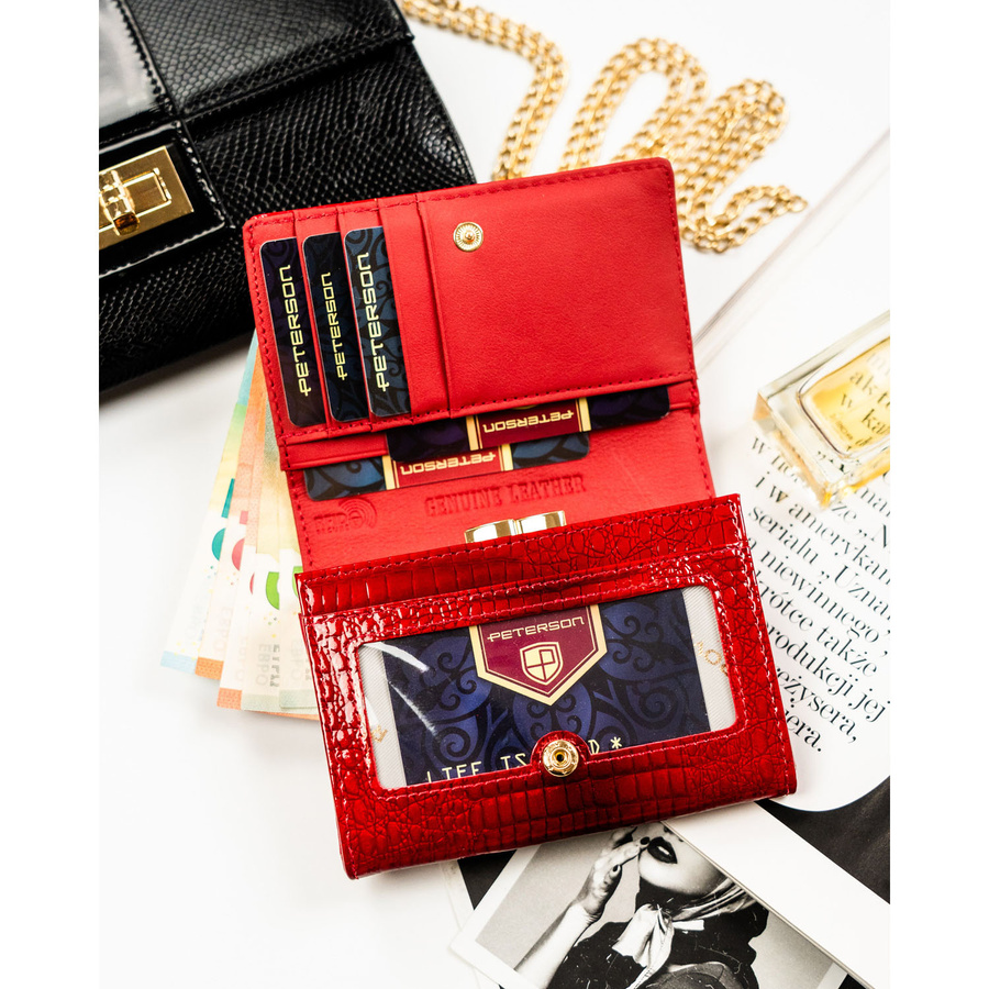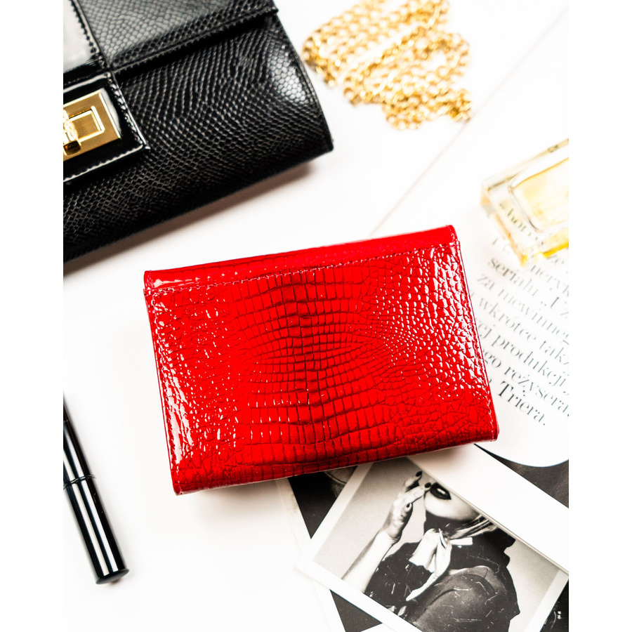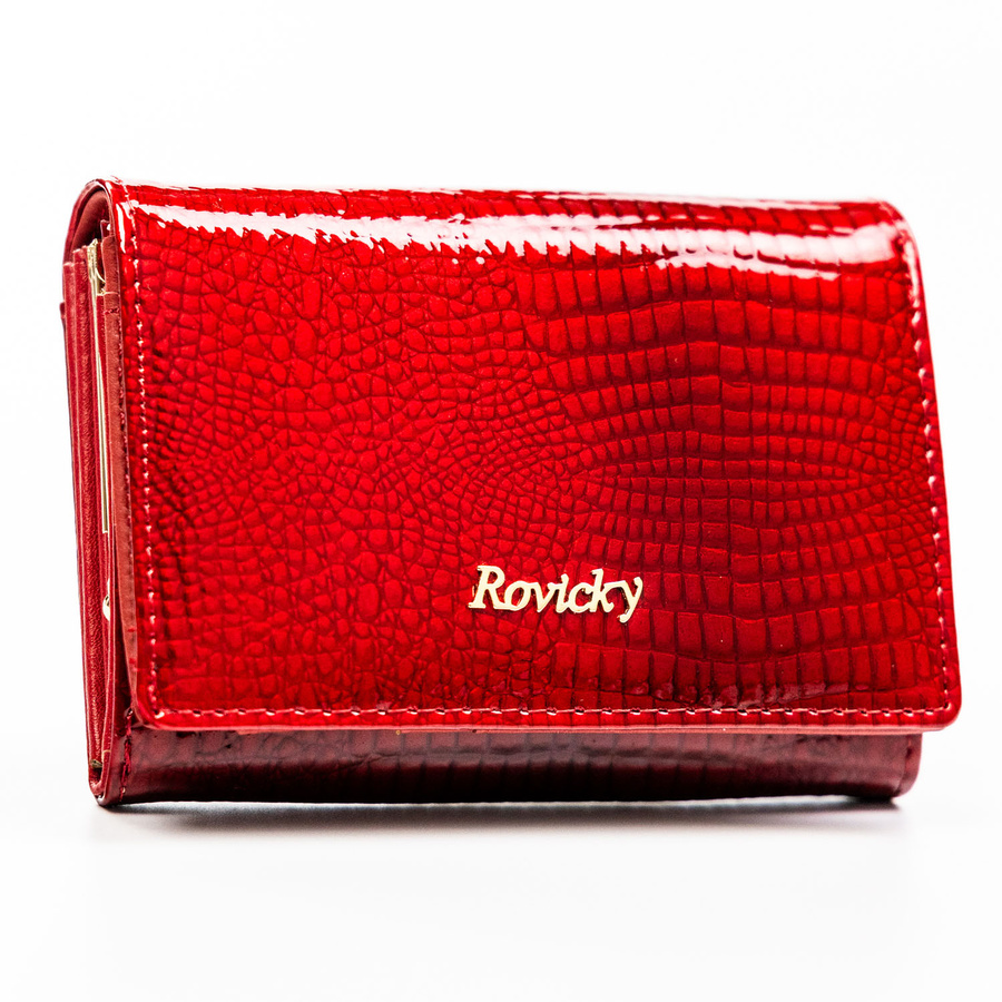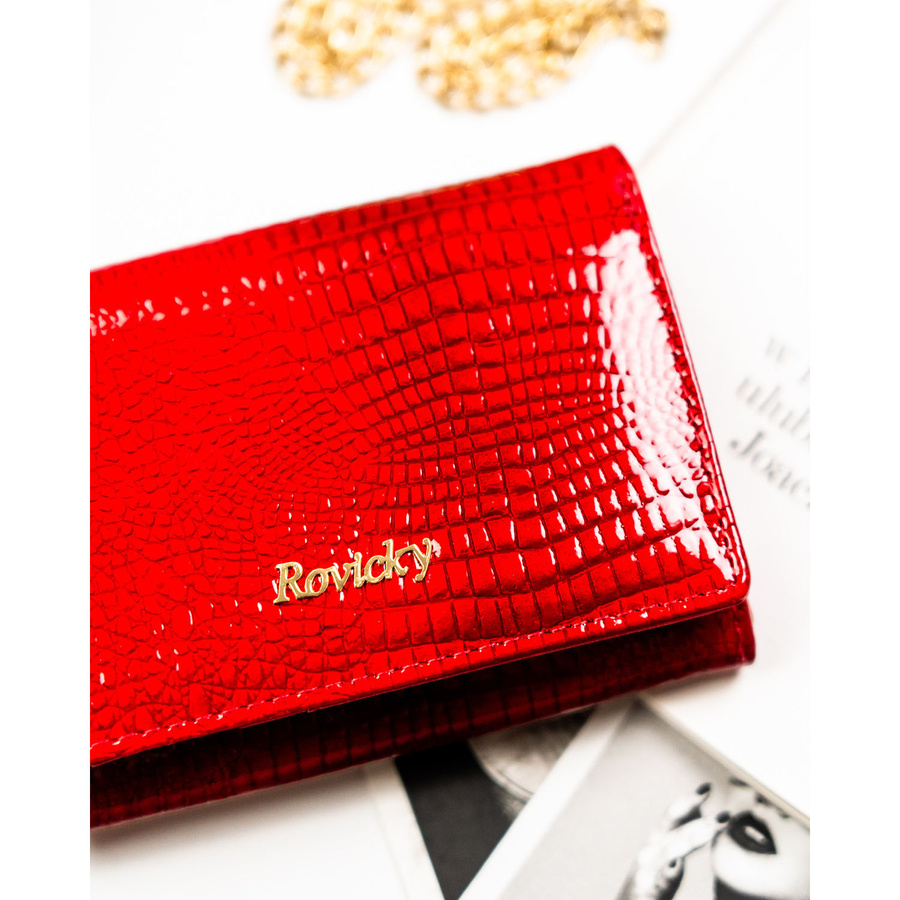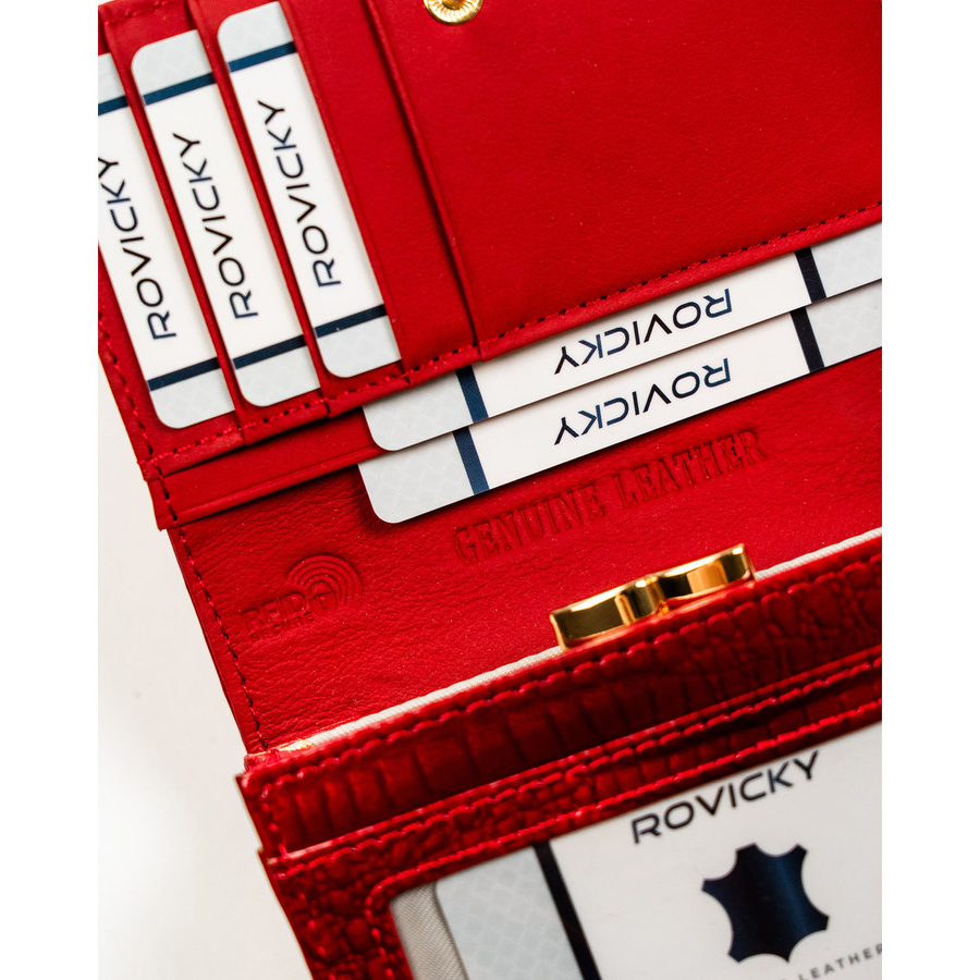 Średni, czerwony portfel damski ze skóry naturalnej zamykany zatrzaskiem - Rovicky