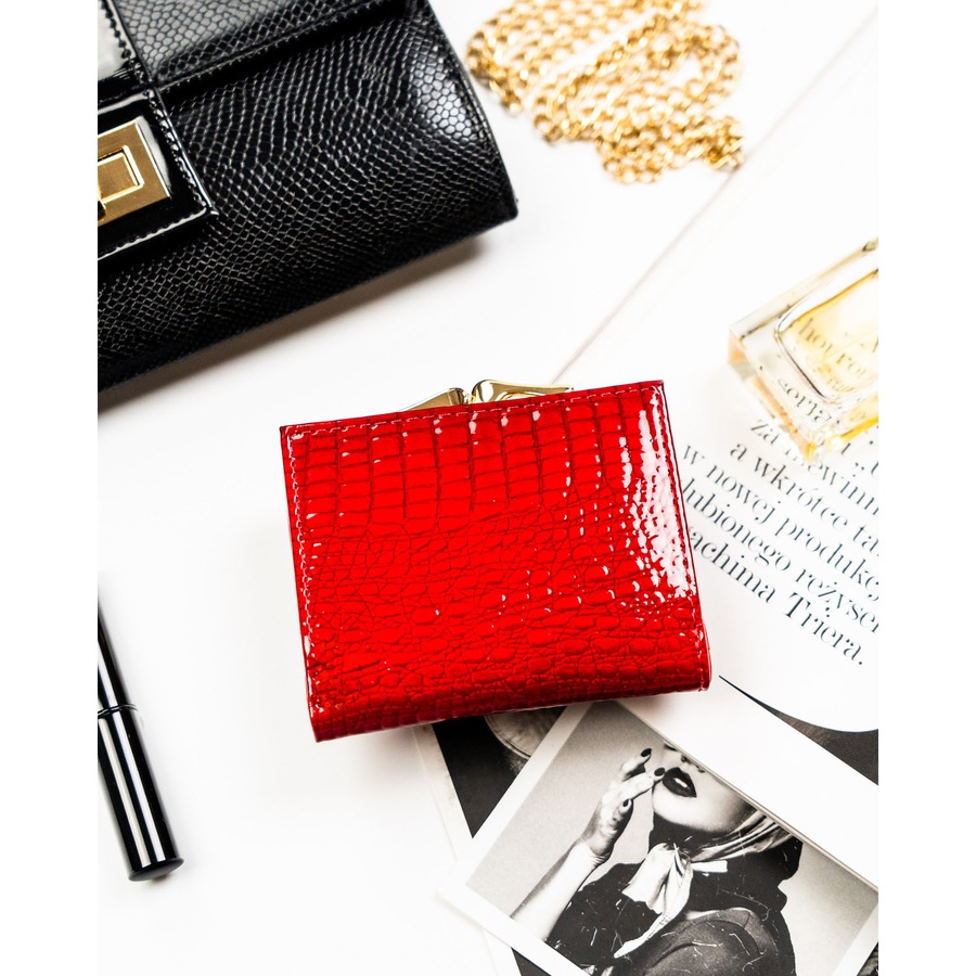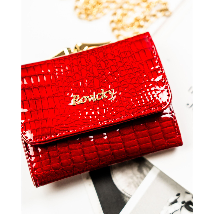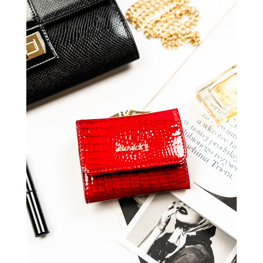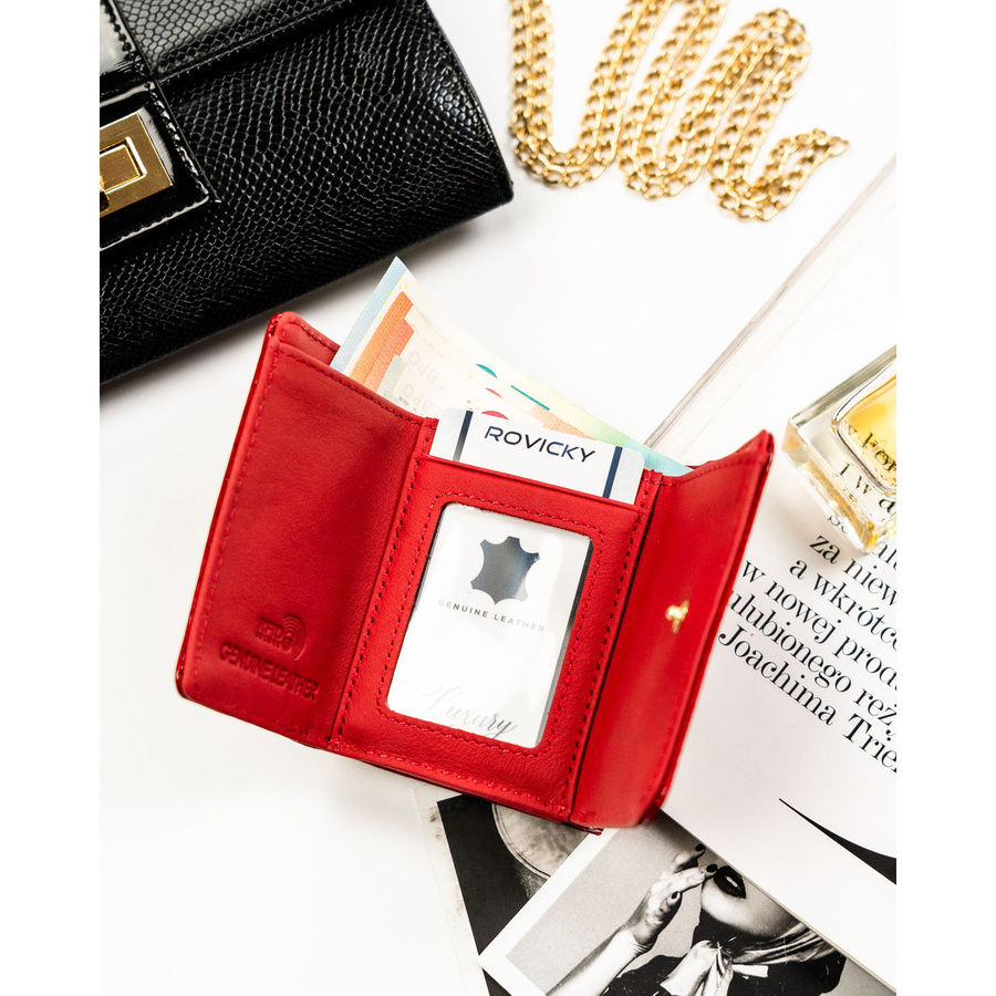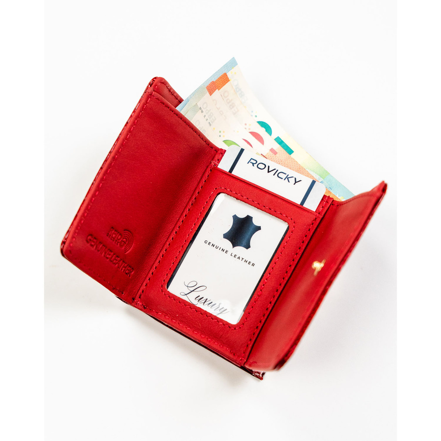 Mały, czerwony portfel damski ze skóry naturalnej z systemem RFID - Rovicky