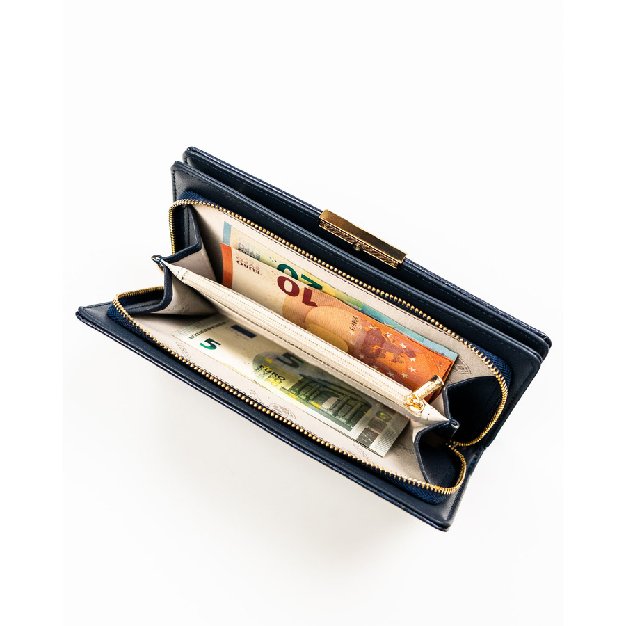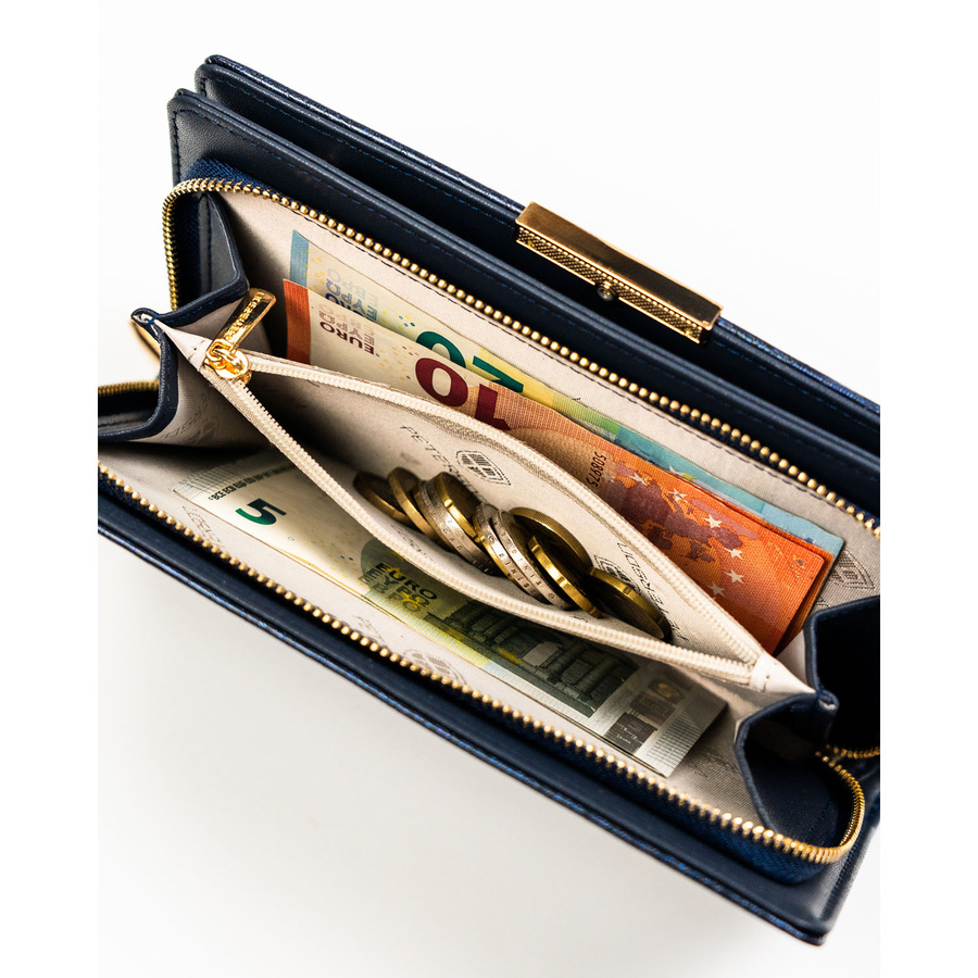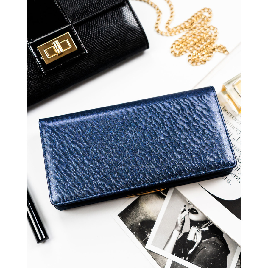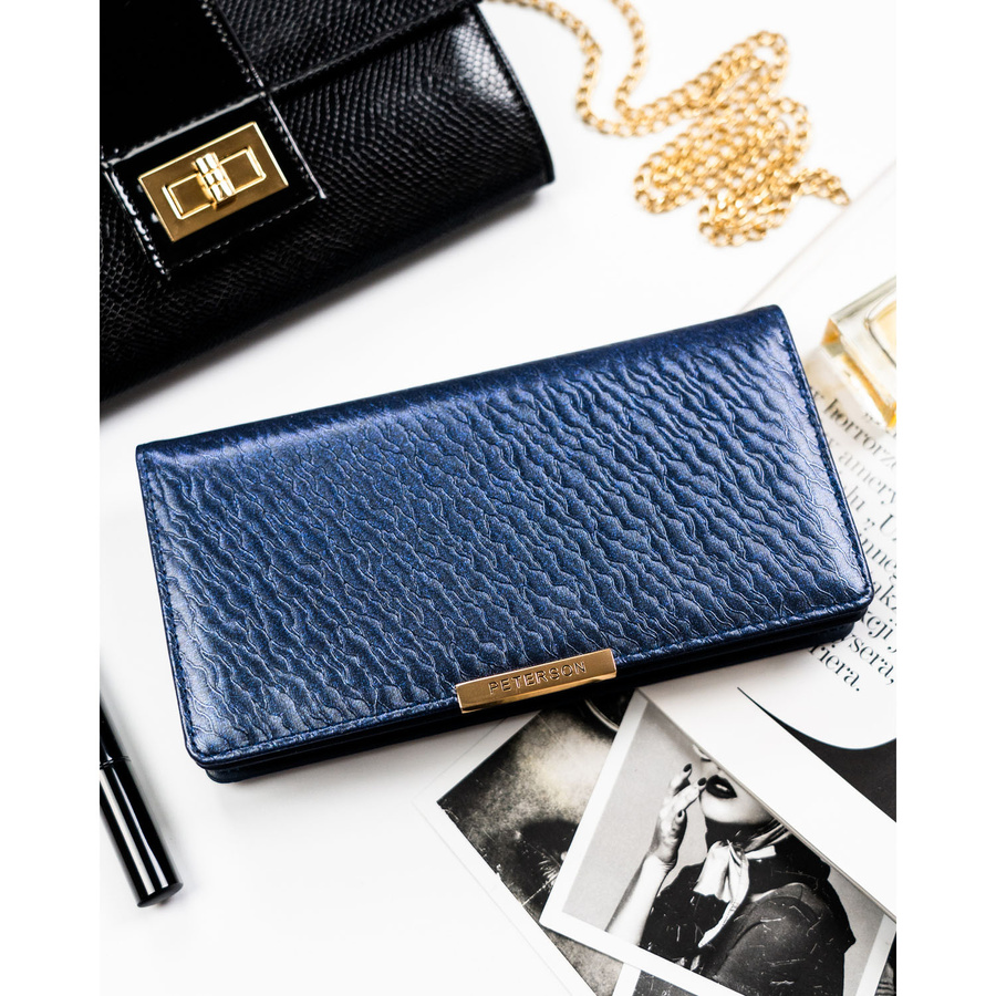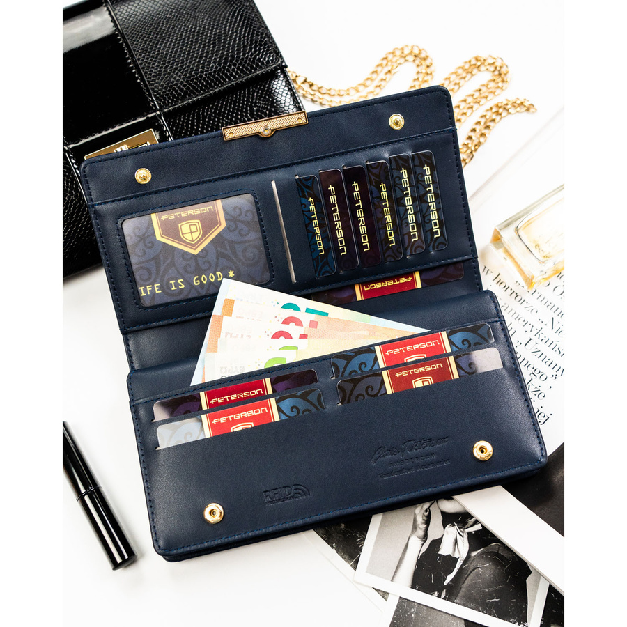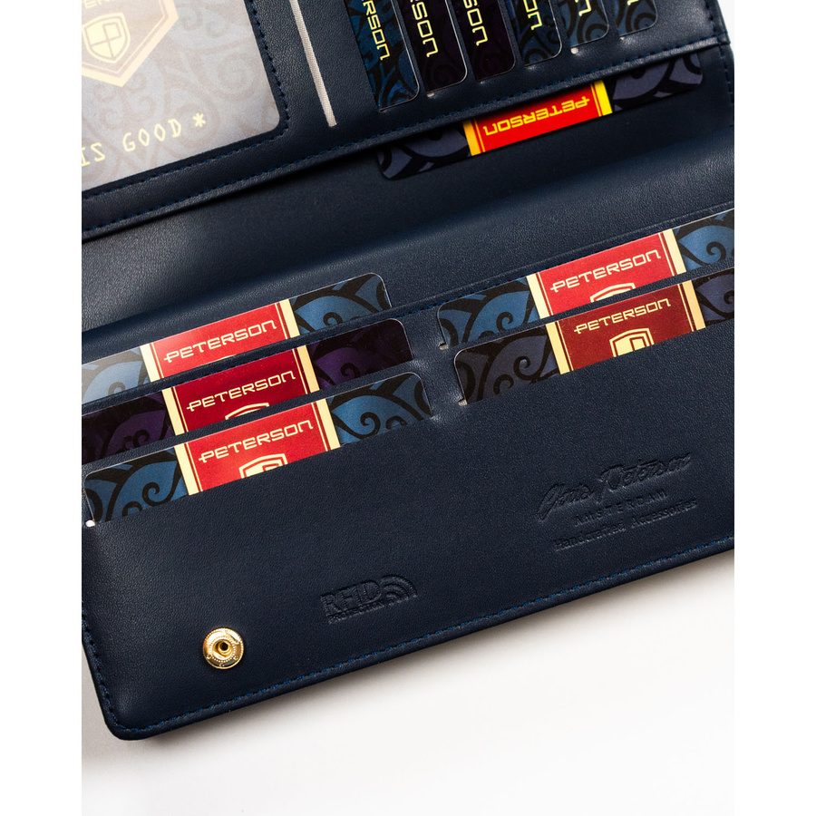 Portfel damski ze skóry ekologicznej w granatowym kolorze z systemem RFID - Peterson