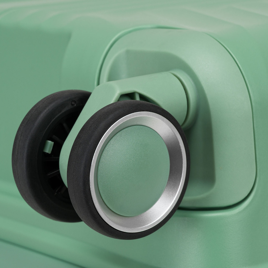 Walizka została wyposażona w cztery obrotowe kółka 360°, które zapewniają pełną swobodę ruchu i wyjątkowy komfort prowadzenia – niezależnie od nawierzchni.