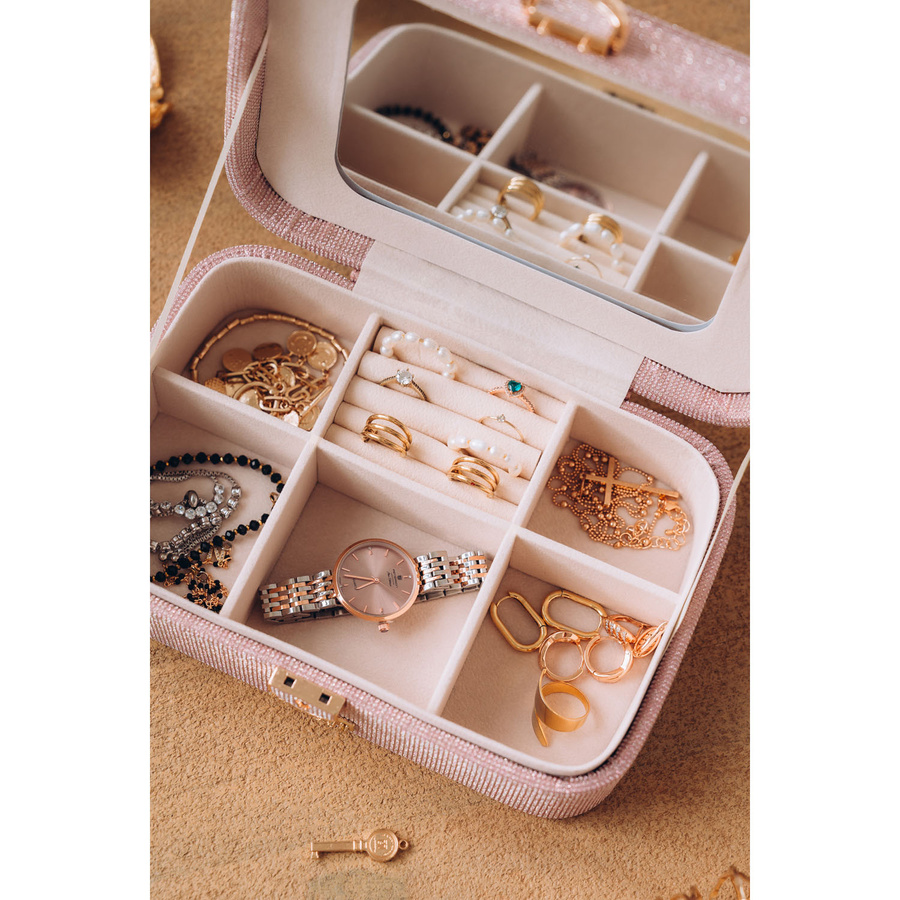• Zintegrowane lusterko w pokrywie - ułatwia szybkie poprawki makijażu czy biżuterii w podróży.