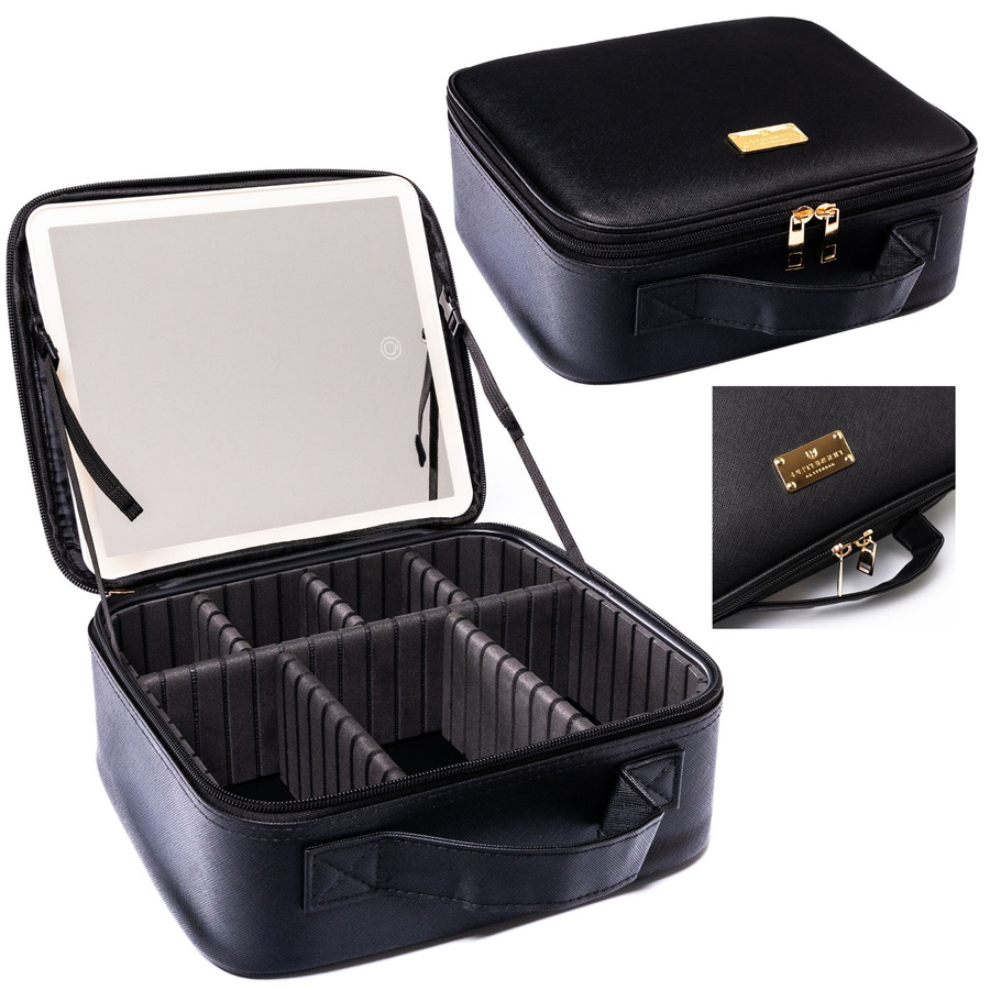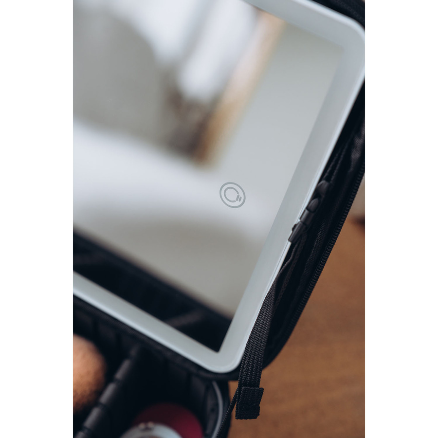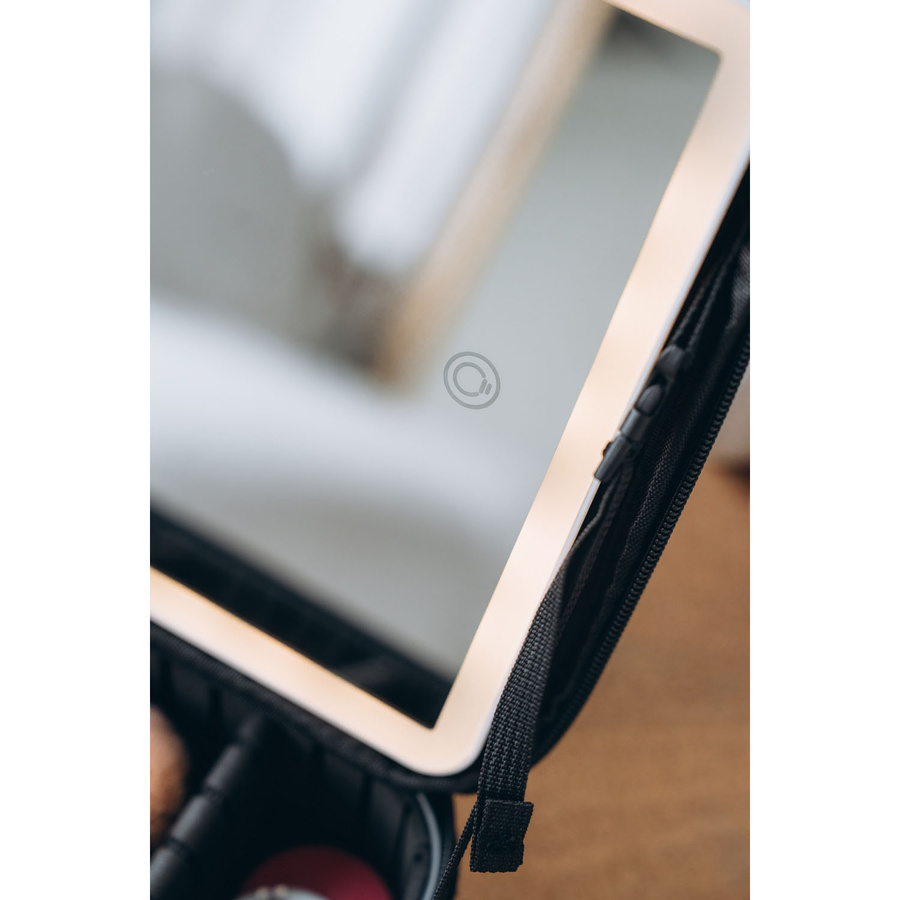 Kuferek Peterson wyposażony jest w wyjmowane lusterko LED montowane na rzep, dzięki czemu możesz z niego korzystać również poza kuferkiem — w domu, w podróży czy w pracy.