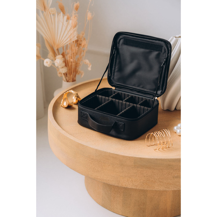 Miękkie ścianki i wykończenie chronią kosmetyki przed uszkodzeniem, a stabilna konstrukcja przegródek zapobiega ich przesuwaniu w czasie podróży. Każdy produkt ma swoje miejsce, a Ty zawsze masz pełną kontrolę nad porządkiem – niezależnie, czy przygotowujesz się w domu, czy w drodze.