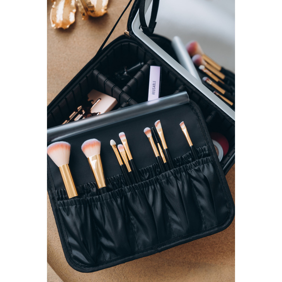 Kompaktowy z zewnątrz, a niezwykle pojemny w środku – idealny na wyjazdy, do salonu kosmetycznego lub do przechowywania domowej kolekcji makijażowej.